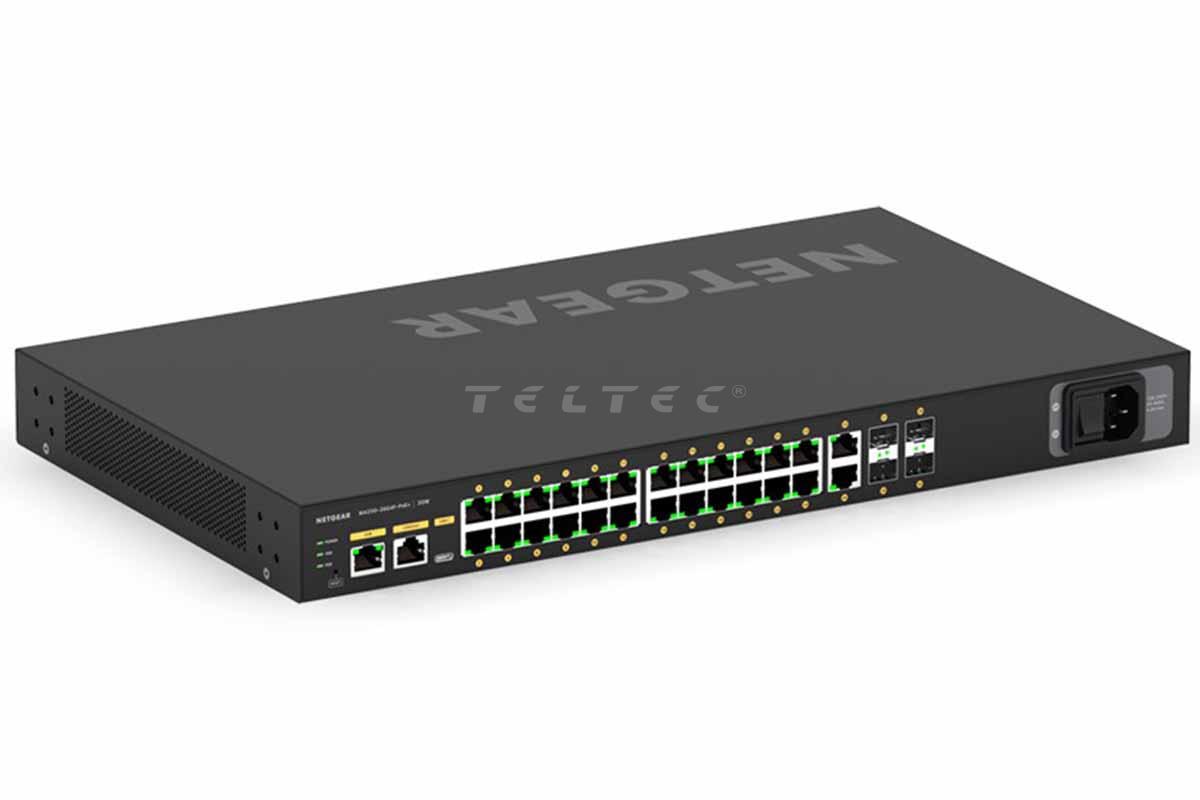 24-Port AV Managed Switch mit PoE+ (300W), 4x SFP, AV-GUI & leisem Betrieb