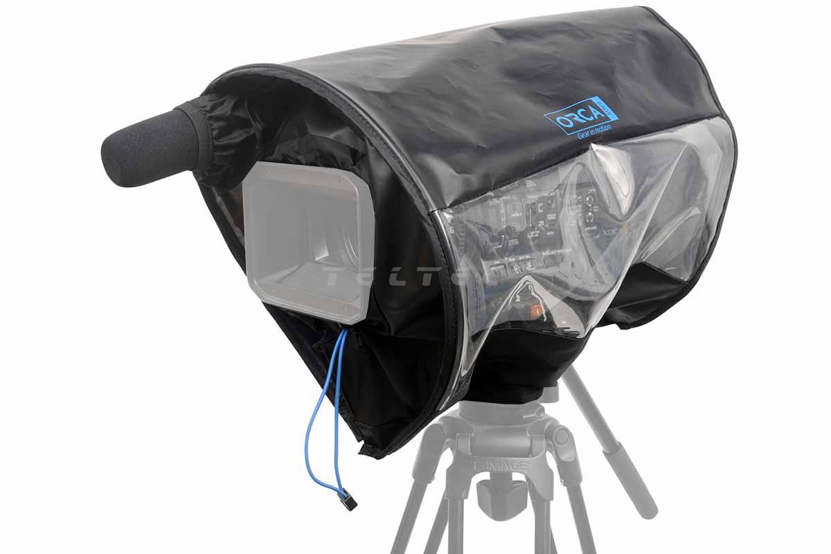Die Orca OR-103 ist ein Regenschutz für kleine Videokameras. Das Orca Quick Rain Cover schützt kleine Videokameras vor Regen, Staub, Wind und anderen Elementen, während die volle Nutzung der Kamerabedienelemente und -funktionen erhalten bleibt. Sie besteht aus wasserabweisendem High-Density-Nylonmaterial mit TPU und großen Fenstern. Die Installation ist einfach und ermöglicht leichten Zugang zu den Bedienelementen und Monitoransicht aus jedem Winkel. Das Bungee-Seilsystem an der Vorderseite und Gummimanschetten an der Vorder- und Rückseite bieten eine flexible Nutzung des hinteren Suchers und des vorderen Audiomikrofons. Der untere Teil der Abdeckung ist mit einem Klettverschluss versehen, um die Kamerahalterung zu befestigen, während gleichzeitig ein einfacher Zugang von unten gewährleistet bleibt.
