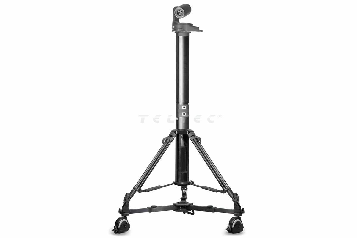 Das Polecam PLC-CETS-K "PanaPod Ultra" ist eine einzelne Hebeeinheit in Stativsystem mit SDS-Beinen und faltbarem Dolly. Das Zentralstück ist eine Teleskopsäule zur Erhöhung von Panasonic PTZ-Kameras (nicht enthalten), die über ein separat erhältliches Panasonic AW-RP Panel ferngesteuert werden kann. Hier kommt das PanaPod in einfacher Ausführung im Paket mit einem starken Stativsystem auf mit Kabelschutz verkleideten Rollen sowie Netzteil, Kabel und weiteren Accessoires.