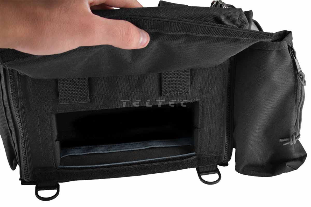Die Porta Brace AO-1.5XB Audiomischertasche ist eine leichte und dennoch robuste Konstruktion die portablen Audio-Recordern, Mischpulten und mehreren Funkmikrofon-Empfängern ausreichend Platz bietet. Die Hauptstruktur der Tasche besteht aus einer starren Kunststoffverkleidung die mit robustem, gepolstertem Cordura®-Gewebe überzogen ist. Dank dieser Materialkombination entsteht ein stabiler und steifer Rahmen, der maximalen Schutz bei geringem Gewicht bietet.