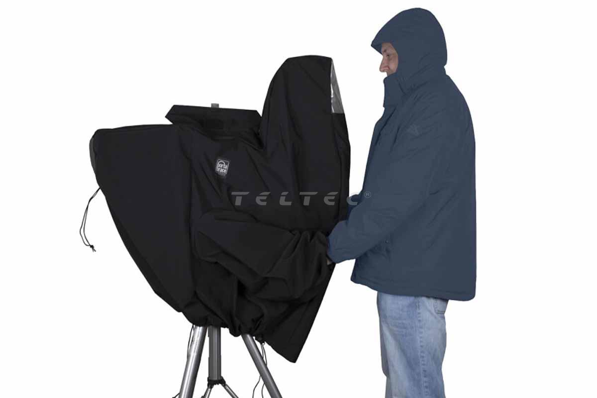 Der Porta Brace CLK-3ENG ist ein Wetterschutz für Stadionkameras mit ENG-Objektiven. Das Nylon-Taslan-Material ist nicht nur wasserdicht sondern auch atmungsaktiv. Vinylfenster in der Regenhülle erlauben einen freien Blick auf die Bedienelemente der Kamera.