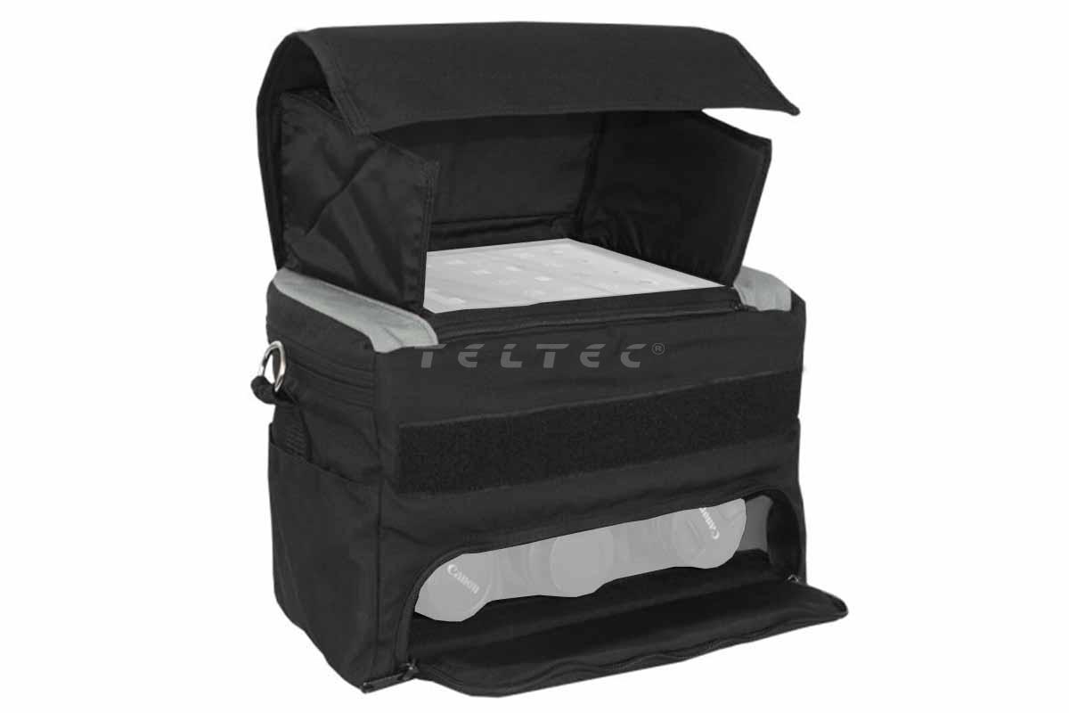 Die Porta Brace MS-5DMKIV Messenger Tasche ist für den Transport von ein oder zwei Canon 5D Mark IV Kameragehäuse, Ersatzobjektiven und Speicherkarten konzipiert. Das Hauptfach ist groß genug, um ein Kameragehäuse und 2 Objektive oder zwei Kameragehäuse aufzunehmen. An der Vorderseite besitzt die Tasche eine, die mit rutschfestem Material ausgekleidet ist, um ein kleines Kamerastativ aufzunehmen. Die Tasche besteht aus strapazierfähigem 1000-Denier Cordura-Nylon und bietet im Deckel Aufnahmefächer für Speicherkarten. Die Fächer haben Abdeckungen aus durchsichtigem Vinyl um die Karten schnell uns sicher identifizieren zu können.