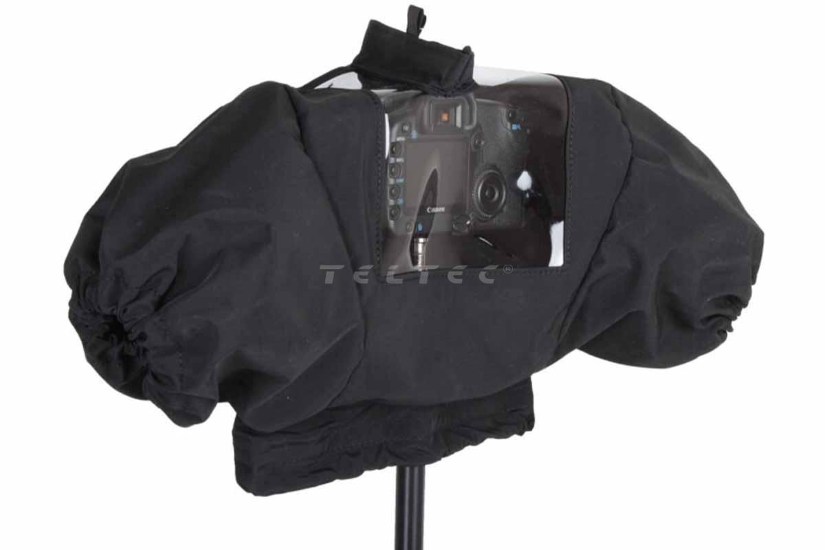 Der Porta Brace RS-DSLR1B Rain Slicker Regenschutz schützt DSLR/DSLM Kameras vor Regen und Staub. Elastischen Öffnungen an beiden Seiten sorgen für uneingeschränkten Zugriff auf die Kamerabedienelemente und ein durchsichtiges Vinylfenster für uneingeschränkten Blick auf das Display der Kamera.