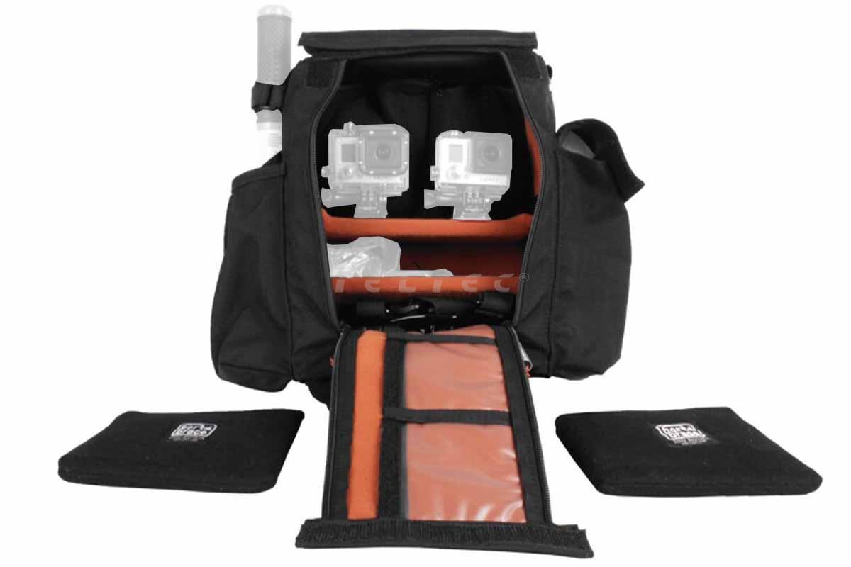 Die Porta Brace SL-1GP ist eine praktische Schultertasche für speziell für GoPro Kameras und Zubehör. Mit dem flexiblen Trennwandsystem lässt sich der Innenraum dem zu transportierenden Equipment perfekt anpassen, Außentaschen bieten Platz und schnellen Zugriff auf weiteres Zubehör oder ein iPad oder Tablet Computer.