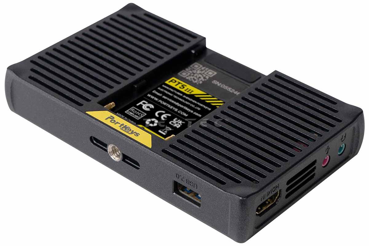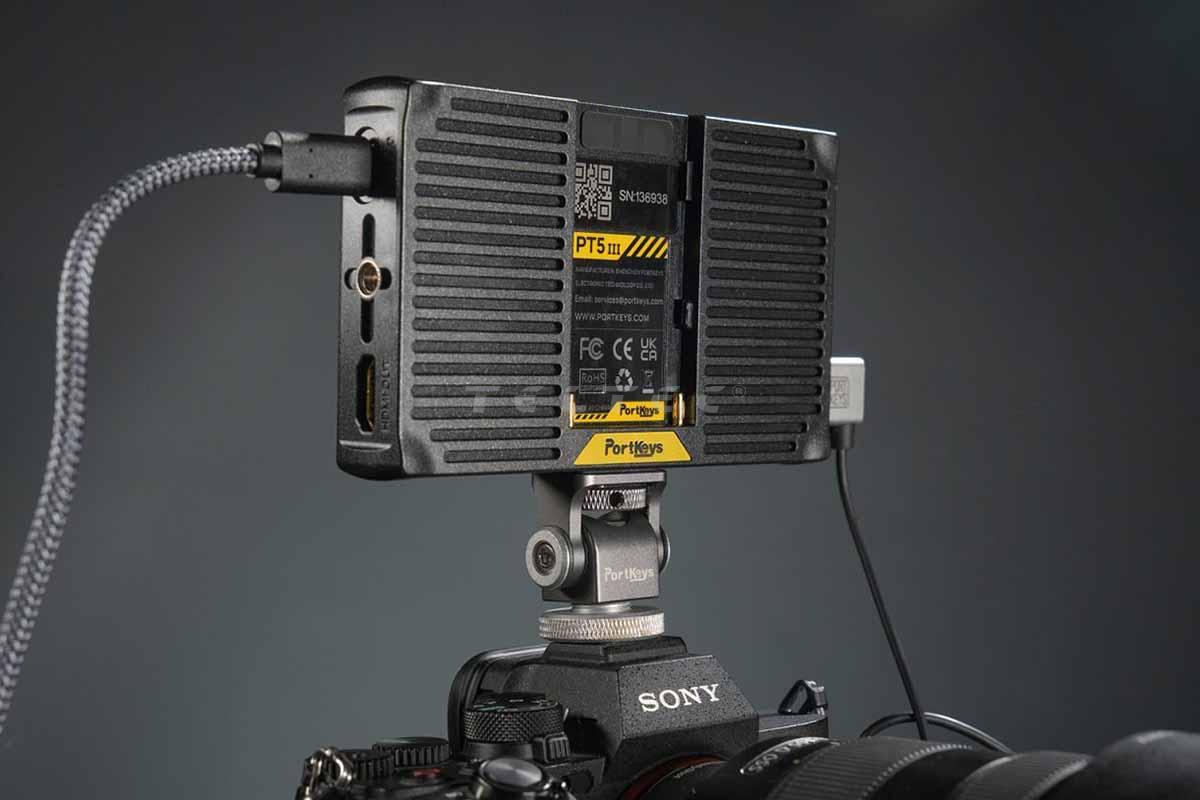 Der Portkeys PT5 III ist ein 5,4-Zoll-Monitor aus ABS und Polycarbonat mit einem Gewicht von nur 154,5 g und Abmessungen von nur 135,1 x 82,5 x 22 mm. Mit diesen kompakten Abmessungen passt dieser federleichte Monitor auf eine Kamera, auf ein Kamerarig oder auf einen Gimbal. Dank MOVNORM OS ist der Portkeys PT5 III extrem einfach zu bedienen und zu navigieren. Darüber hinaus verfügt er über alle wesentlichen professionellen Monitoring-Tools, die für präzise und sichere Entscheidungen am Set erforderlich sind. Auf der linken Seite des PT5 III befindet sich ein HDMI-Videoeingang, der Auflösungen bis zu 4K DCI bei 30p unterstützt, sowie ein 3,5-mm-Kopfhöreranschluss und ein 3,5-mm-Mikrofoneingang. Der HDMI-Ausgang, der Auflösungen bis zu 1080P60 unterstützt, befindet sich auf der rechten Seite des Monitors. Über dem HDMI-Ausgang befindet sich ein USB-C-Anschluss, über den der Monitor extern mit Strom versorgt werden kann, zum Beispiel über eine Powerbank oder einen V-Mount/Gold Mount-Akku.