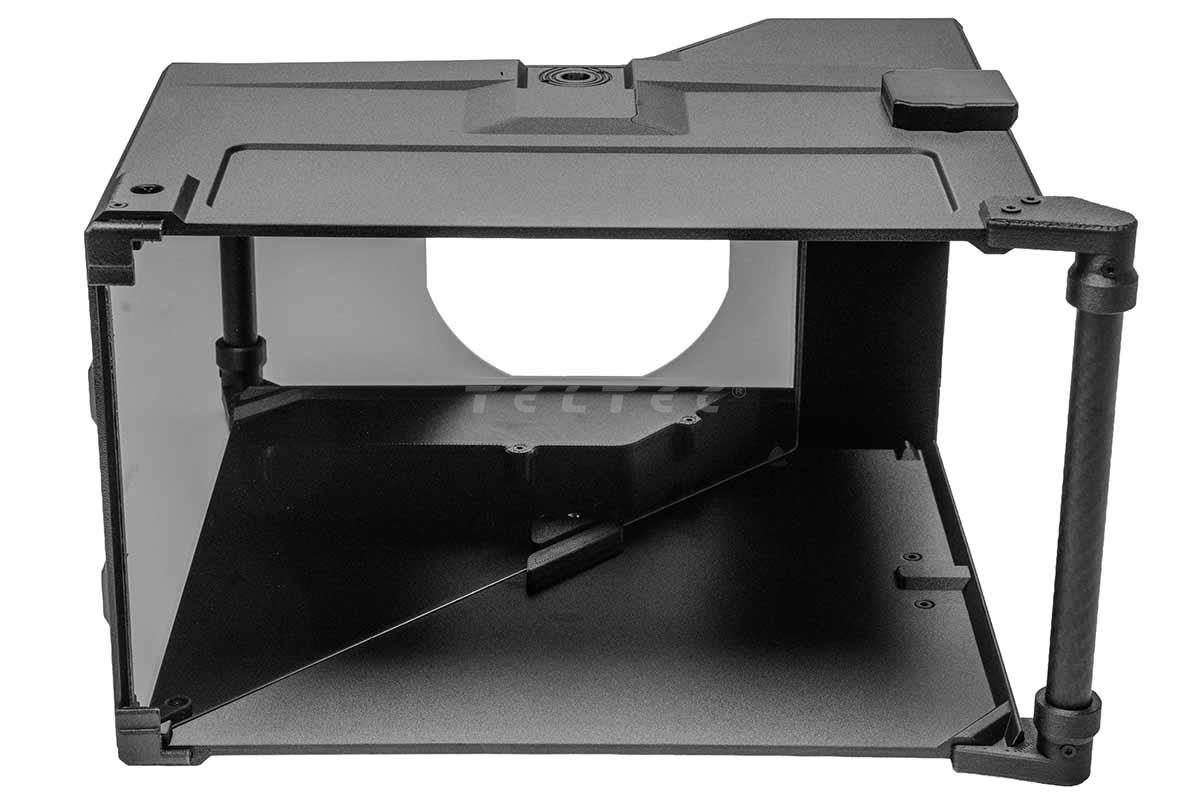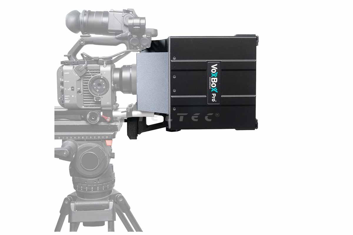 Die PrimeLight VoxBox Pro MK3 Spiegelbox wird vor dem Objektiv der Kamera positioniert. Sie erleichtert es Filmemachern in Interviewsituationen den Blickkontakt zur interviewten Person zu halten. Durch die werkzeugfreie Montage lässt sich die PrimeLight VoxBox Pro MK3 Spiegelbox in wenigen Minuten aufbauen und z.B. auf einem vorhandenen 15 mm Rohrsystem oder einem Lichtstativ anbringen. Mit der im Lieferumfang enthaltenen Tablet-Halterung kann die VoxBox Pro mit einem Tablet (Ideal für iPad Pro 13" oder vergleichbare Modelle) auch als Teleprompter eingesetzt werden. Das neue Design der VoxBox Pro MK3 ermöglicht nun auch die Verwendung von Vollformat 35mm Objektiven ( geeignet für Weitwinkelobjektiven bis hinunter zu 28 mm) ohne dass es zu Vignettierungen kommt. Auch der Einsatz an einer Sony FX6 Kamera mit kurzen Objektiven stellt jetzt kein Problem mehr dar. Die VoxBox Pro MK3 verfügt über eine Aussparung, in die der Handgriff der Kamera eintauchen kann.