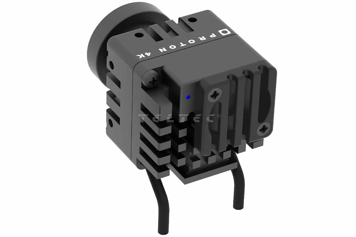 Die Proton PCI-4K PROTON 4K ist eine würfelgroße 4K-Kamera mit Ultraweitwinkel bis 124°. Mit ihrer 12-Bit-Sensortechnologie und hohen Empfindlichkeit schafft sie schöne Bilder und Videos auch bei geringerem Licht und leiseren Tönen mit bis zu 124° Ultraweitwinkel. Ihr winziges Gehäuse bietet insgesamt acht M2.5 Bohrungen für ganz individuelle Montagemöglichkeiten, verfügt aber auch über eine wahlweise oben oder unten anbringbare Halterung mit 1/4"-Stativbohrung. Zudem kommt die PROTON 4K mit zwei Kabeln, wovon eine der Stromzufuhr/Steuerung, die andere der Datenübertragung dient. Jeweils eine LED auf Vorder- und Rückseite gibt Aufschluss über den Modus der Kamera. Um die PROTON 4K zukünftig mit Updates zu versorgen, sind das separat erhältliche PROTON PIO sowie ein Computer notwendig. Ausgestattet ist sie mit einer M12 Objektivhalterung und kommt mit dem verzerrungsfreien 3,2 mm F2.3 Objektiv, das ausgewechselt werden kann (unbedingt die Anleitung beachten). Im Gegensatz zu den anderen PROTON Kameras schafft diese eine Auflösung von bis zu 4K60 mit der Möglichkeit, das Bild auf 1080p herunterzuskalieren.