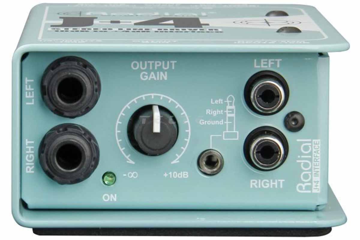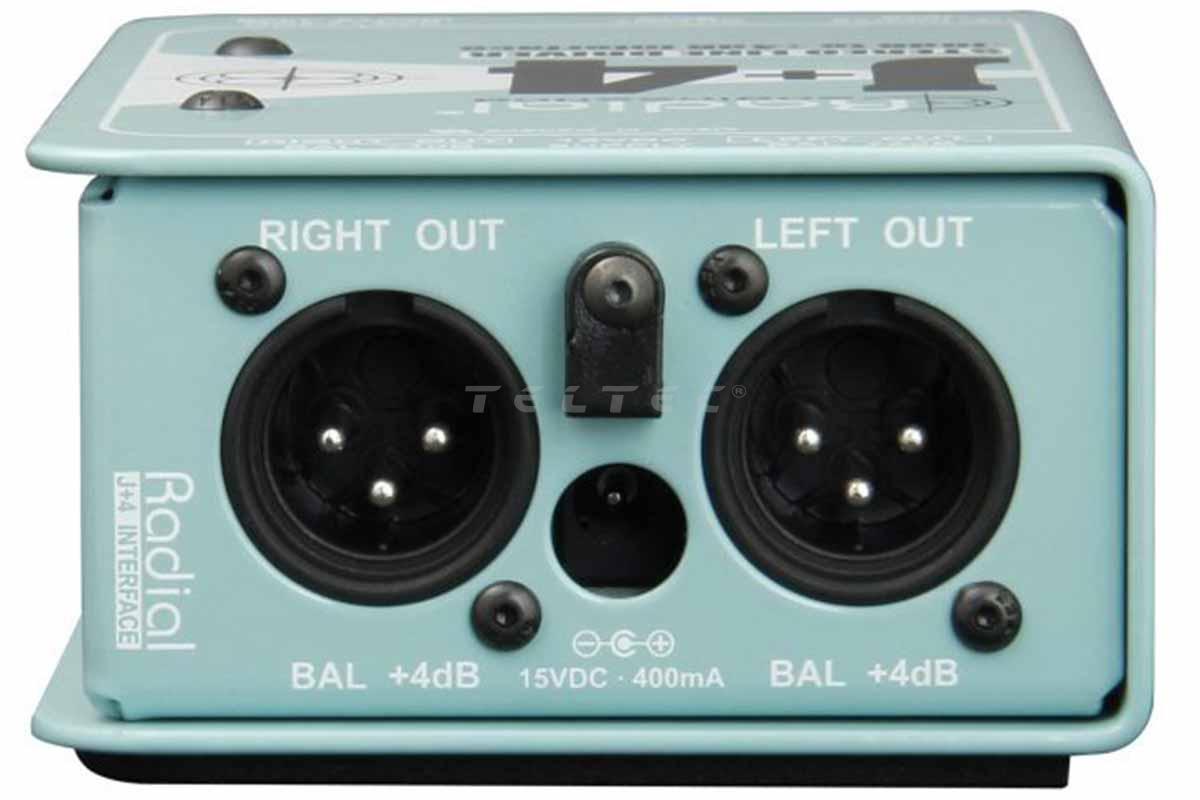 Der Radial Engineering J+4 ist ein Stereo-Interface, das für den Anschluss von Geräten mit niedrigem Ausgangspegel, wie z.B. Instrumenten oder Computern mit unsymmetrischer Ausgangsspannung entwickelt wurde und deren Signal auf einen symmetrischen +4dB-Pegel verstärkt, um eine Verbindung zu professionellen Audioaufnahme- und -wiedergabegeräten zu ermöglichen.