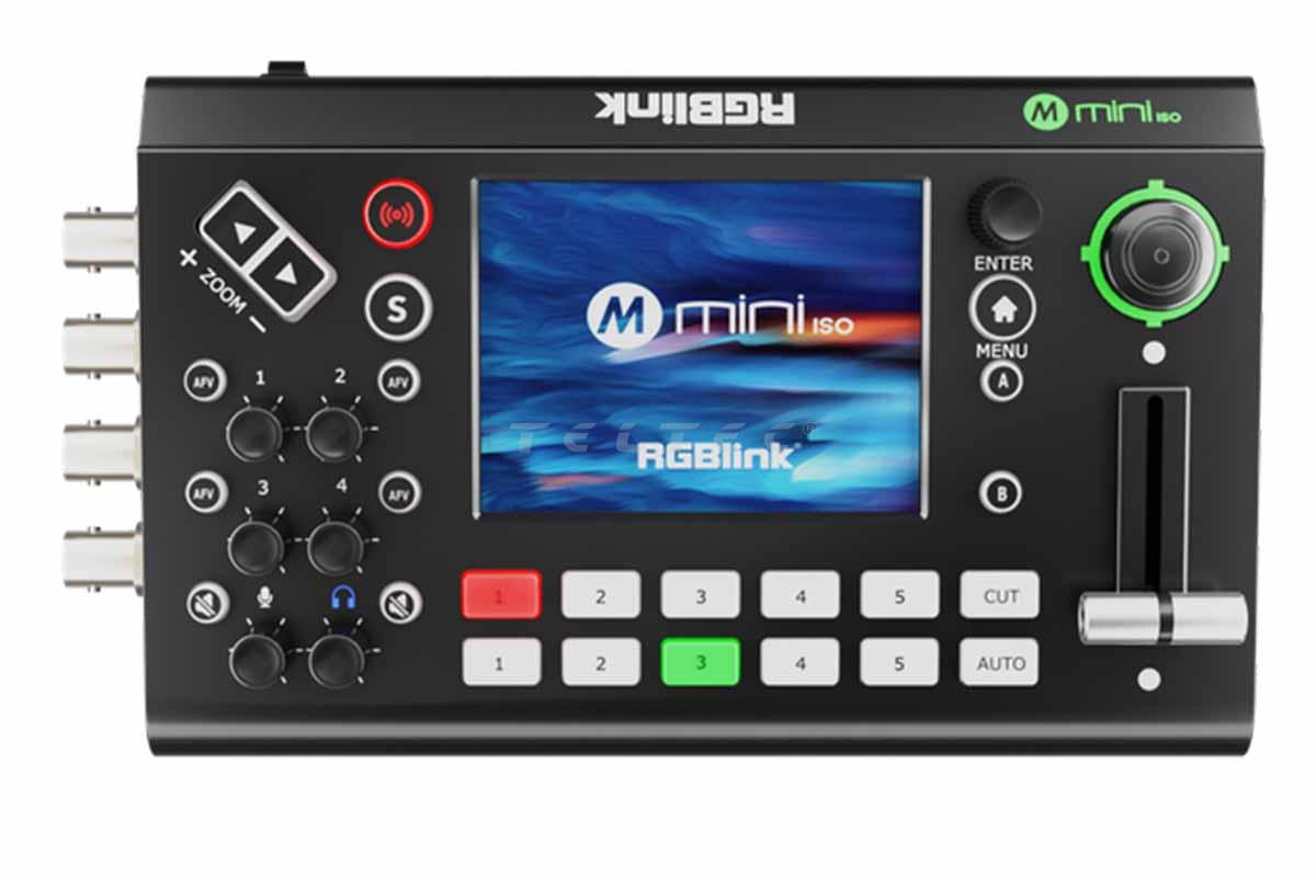 Der RGBlink Mini ISO verfügt über vier 4K-HDMI-Eingänge und vier SDI-Eingänge, die Signale von PC, Laptop, Kamera und mehr unterstützen. Sowohl Line- als auch Mic-Pegel-Audio werden unterstützt. Er hat zwei 2K/Full-HD HDMI-Ausgänge für das Monitoring von Multiview-Previews, Programmen oder Testmustern. Ein USB-Ausgang unterstützt die Kodierungsformate YUY2 und MJPEG Formate, die als Webcam für das Streaming auf Facebook, YouTube, ZOOM, etc. erkannt werden können. Der mini-ISO ist mit einem 3,5-Zoll-TFT-Touchscreen für die Menübedienung und die Anzeige von Videoquellen ausgestattet. Der Mini-ISO ist vollgepackt mit Funktionen wie dynamische Ausgangssteuerung Kontrolle, Multiview-Vorschau, Bild im Bild, Chroma Key, Luma Key, Übergänge, integrierte PTZ-Kamerasteuerung und vieles mehr. Der mini-ISO ist kompatibel mit Windows- und macOS-Desktop-Betriebssystemen und unterstützt die Steuerung über iOS- und Android-Mobilgeräte. Es unterstützt TAO Cloud integrierte Steuerung und gleichzeitiges Streaming zu 4 Live-Streaming-Plattformen über RTMP(S).