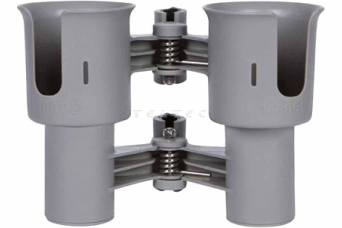 Der RoboCup Grey ist ein Getränkehalter mit zwei Cups, den man an diversen Geräten montieren kann. Die starken federgestützten Klemmen können problemlos an flachen und runden Kanten von bis zu 50 mm Dicke geklemmt werden. Die Cups nehmen Dosen und Flaschen mit einem Durchmesser von ca. 50 bis 75 mm auf.