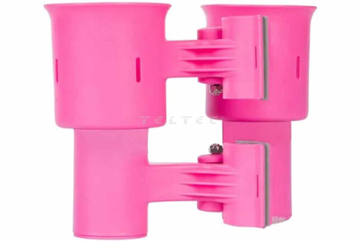 Der RoboCup Hot Pink ist ein Getränkehalter mit zwei Cups, den man an diversen Geräten montieren kann. Die starken federgestützten Klemmen können problemlos an flachen und runden Kanten von bis zu 50 mm Dicke geklemmt werden. Die Cups nehmen Dosen und Flaschen mit einem Durchmesser von ca. 50 bis 75 mm auf.