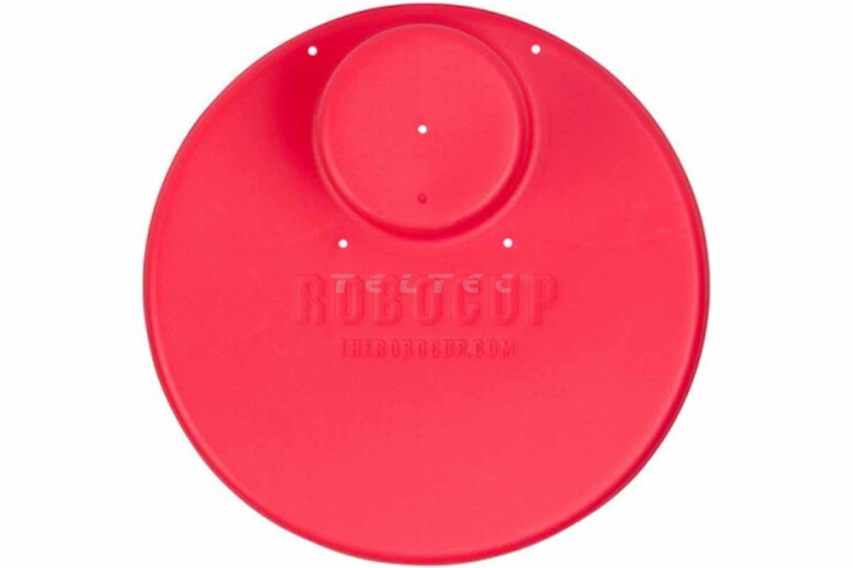 Die RoboCup Plate: Red ist ein ca. ∅21,6 cm großer Teller mit 3-teiliger Fläche und Getränkehalterung. Die Plate wird mit ihrer eigenen Getränkehalterung auf den RoboCup gesteckt, sodass beim Einsatz dieser Erweiterung kein Platz verloren geht. Die Fläche für Speisen sind in einen großen Mittelteil und zwei gleichermaßen kleine Seitenteile eingeteilt. Insgesamt hat der Teller 5 Abflusslöcher, um verschüttete Getränke etc. besser ableiten zu können. Die RoboCup Plate hat eine glatte Beschichtung, welche leicht gereinigt werden kann, per Hand oder im oberen Fach einer Spülmaschine.