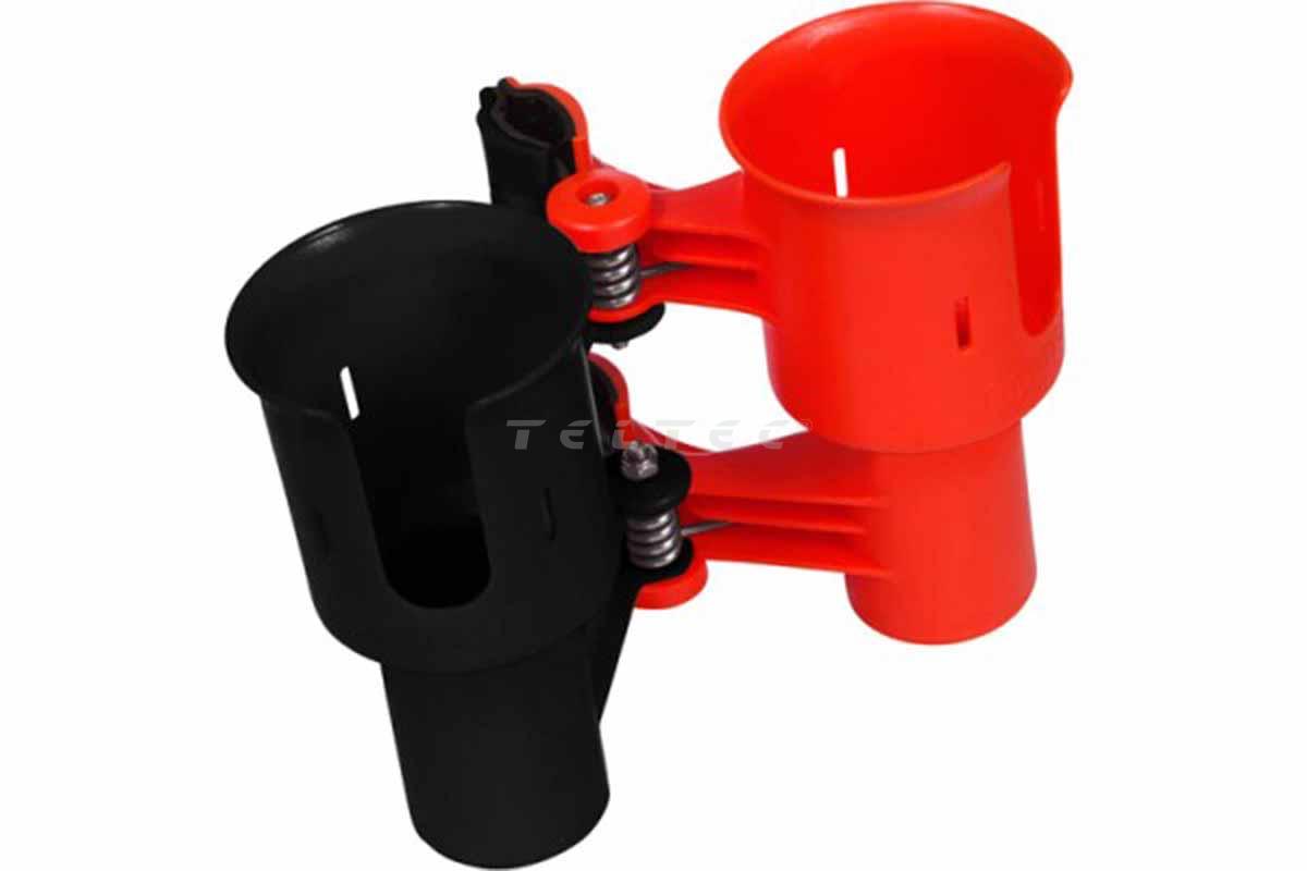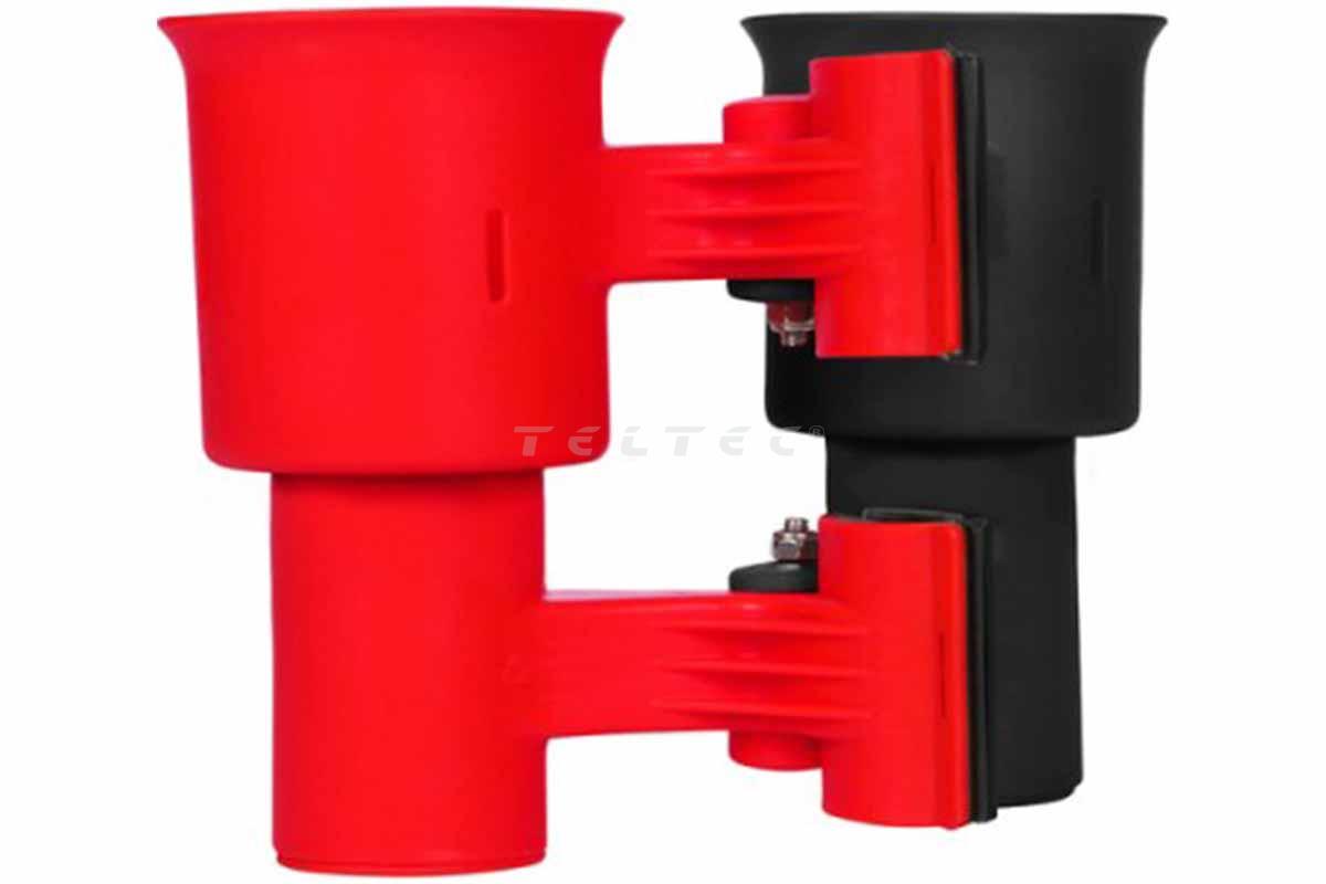 Der RoboCup Red/Black ist ein Getränkehalter mit zwei Cups, den man an diversen Geräten montieren kann. Die starken federgestützten Klemmen können problemlos an flachen und runden Kanten von bis zu 50 mm Dicke geklemmt werden. Die Cups nehmen Dosen und Flaschen mit einem Durchmesser von ca. 50 bis 75 mm auf. Ein Cup ist schwarz, der andere rot.