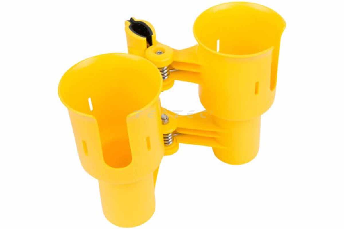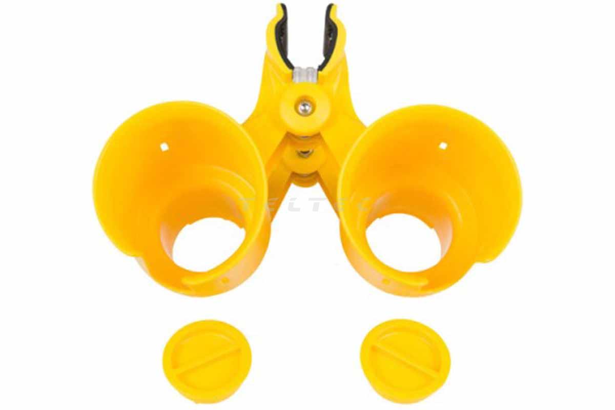 Der RoboCup Yellow ist ein Getränkehalter mit zwei Cups, den man an diversen Geräten montieren kann. Die starken federgestützten Klemmen können problemlos an flachen und runden Kanten von bis zu 50 mm Dicke geklemmt werden. Die Cups nehmen Dosen und Flaschen mit einem Durchmesser von ca. 50 bis 75 mm auf.