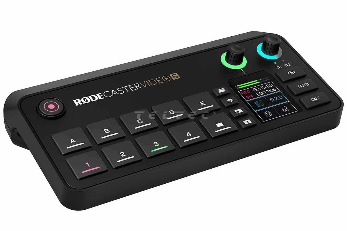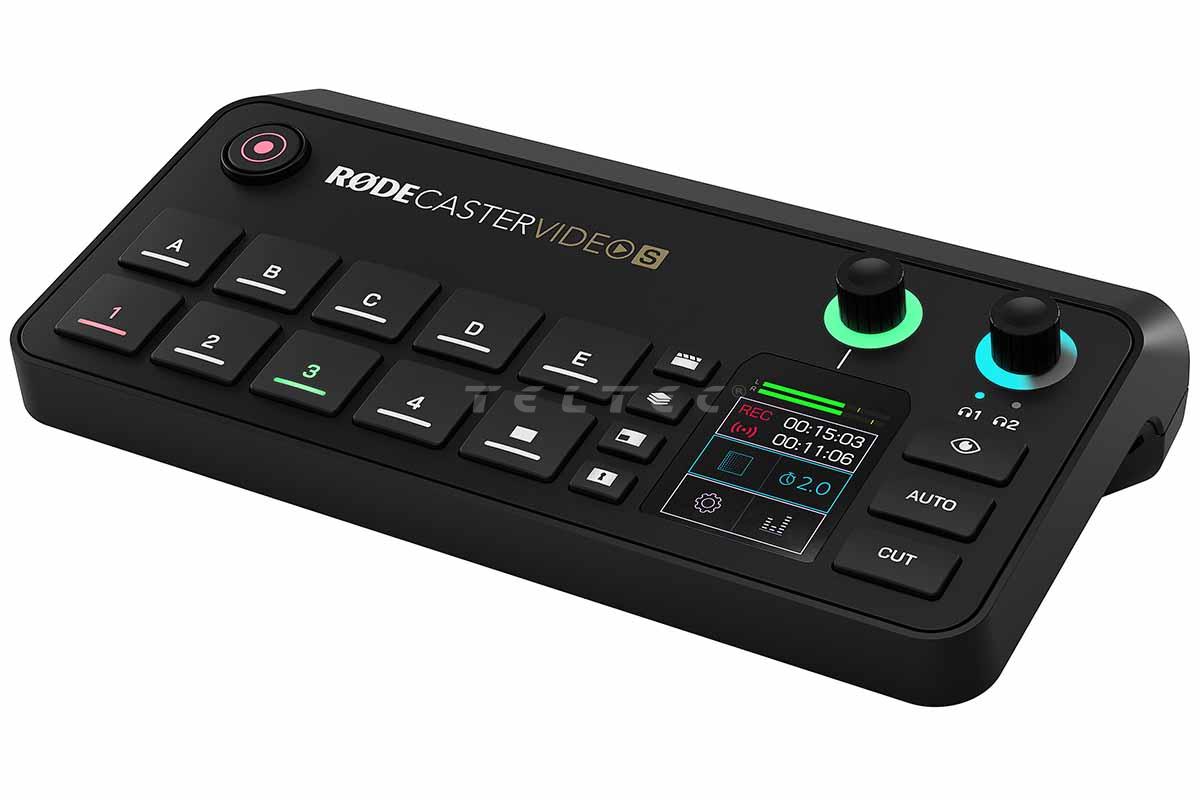 Der Rode RØDECaster Video S ist eine intuitiv bedienbare Video- und Audio-Produktionskonsole mit einer leistungsstarken CPU, einem übersichtlichen Bedienfeld und einer szenenbasierten Schaltarchitektur. Ideal für Content Creation, Livestreaming und professionelle Videoproduktion mit flacher Lernkurve, automatischem Chroma Keying, automatisierbaren Kamerawechseln und integrierter Audiosektion in Studioqualität. Die Konsole bietet fünf Szenentaster, vier Quellentaster, AUTO und CUT sowie die Tasten Fade to Black, Media, Overlay, Multi Source, Keying und Inspect. Ein 2"-Touchscreen und ein Schalt-Encoder erleichtern die Konfiguration. Auto Switching setzt Kamera und Szenenwechsel anhand des Audiosignals um und eignet sich besonders für Solo Produktionen. Die Konsole hat drei HDMI Eingänge, einen konfigurierbarer HDMI Ausgang, Ethernet, vier USB C Ports, zwei 6,35 Millimeter TRS Buchsen für Kopfhörer sowie zwei Neutrik Combo Buchsen für XLR oder 6,35 Millimeter Line und Mikrofon. Zwei integrierte Drahtlos Empfänger unterstützen aktuelle RØDE Wireless Sender. Ein rauscharm arbeitender Preamp liefert bis zu 76 dB Gain. Die Aufzeichnung in H.264 erfolgt direkt auf ein externes USB Laufwerk, inklusive ISO Aufnahmen von vier Quellen plus Programm Feed. RTMP Streaming zu Facebook, X, LinkedIn, Twitch und YouTube ist über Ethernet oder WLAN möglich. Der Audio Signalprozessor bietet pro Eingang Kompressor, Equalizer, De-Esser, Stereopanorama, Noise Gate, Hochpassfilter, Aural Exciter, Big Bottom und Compellor. Die kostenlose RØDECaster App für Mac und PC ermöglicht Fernsteuerung, Szenenerstellung und erweiterte Konfiguration.