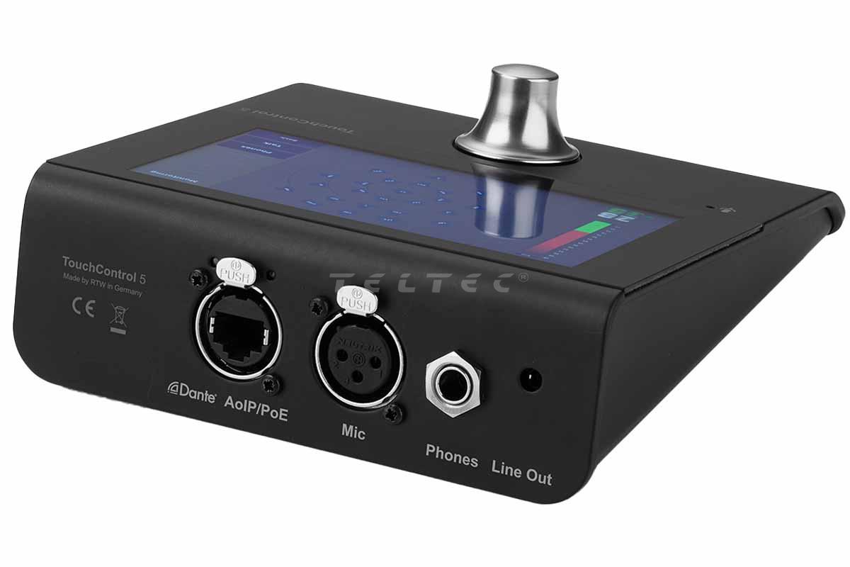 Das RTW TouchControl 5 Dante ist ein Dante-basierter Monitor-Controller mit 5"-Touch-Display. Über das integrierte Mikrofon, das auch als Talkback-Mikrofon verwendet werden kann, wird die SPL-Messung durchgeführt. Sowohl der Touchscreen als auch der Drehknopf mit Druckfunktion sind konfigurierbar, um den individuellen Anforderungen gerecht zu werden. Bis zu 32 Dante-Kanäle für Ein- und Ausgänge unterstützen das TouchControl 5 beim Verarbeiten von Kanalkonfigurationen von Stereo bis 22.2. Die bewährte Monitoring-Controller-Engine kommt hier zum Einsatz und bringt eine Menge an Features wie z.B. Downmix, A/B-Quellenvergleich, SPL Readout oder Testtongenerator mit sich. Über die SPL-Anzeige auf dem Display lässt sich der Wert des Eingangssignals als Bargraphen oder numerisch ablesen. Die Lautsprecher können in Bezug auf Pegel, Verzögerung und EQ kalibriert werden, um sie perfekt aufeinander abzustimmen. Zudem erlaubt die DSP-Sektion eine volle Kontrolle über jeden Lautsprecher. Zusätzlich zur Monitoring-Controller-Engine gibt es auch die PPM-Metering-Engine, um z.B. jeden Dante-Kanal zu messen. Dabei werden auch alle in einer Profi-Umgebung nötigen Skalentypen unterstützt. Das TouchControl 5 ist ein echtes Netzwerkgerät, wodurch die Einrichtung auch ganz einfach über einen Webbrowser eingerichtet werden kann. Außerdem ist es ab Firmware-Version 1.1 ein "all-inclusive"-Modell und verfügt über sämtliche Funktionen, sodass nicht mehr mehrere Einzellizenzen notwendig sind.
