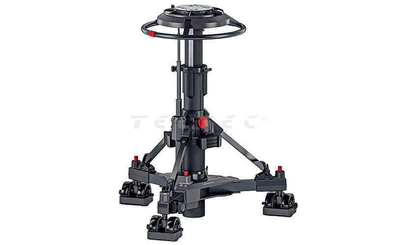 Vario Pedestal 1-70 und dem Sachtler Fluidkopf Video 60 Plus Studio. Das Vario Ped 1-70 hat ergonomisch angeordnete Bedienelemente, bietet Crab & Steer-Funktionalität und kann Nutzlasten von bis zu 70 kg tragen. Zudem ist es mit 12,5-cm Rädern und verstellbaren Kabelabweisern ausgestattet. Über das 18-stufige Ausgleichssystem des Fluidkopfes Video 60 Studio und die verschiebbare Ausgleichsplatte mit einen Verschiebebereich von bis zu 115 mm lässt sich schnell und einfach eine perfekt eingestellte Balance erreichen. Durch das Touch & Go Schnellverschluss-System und die automatische Verriegelung ist das Aufsetzen und Abnehmen der Kamera eine Sache von lediglich ein paar Sekunden.