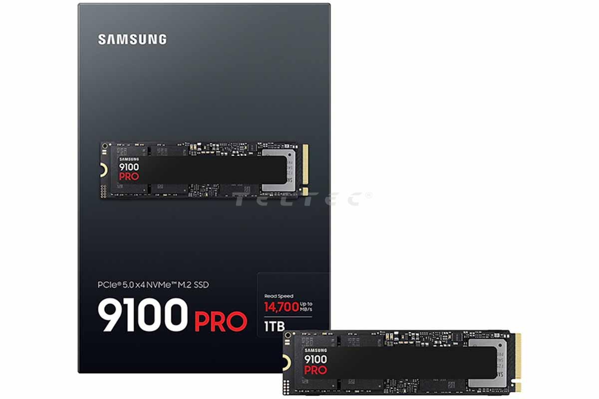 Die Samsung SSD 9100 Pro NVMe M.2 1TB PCIe ist eine NVMe™ Gen5 SSD mit außergewöhnlichen Leistungsdaten. Sie erreicht Lesegeschwindigkeiten von bis zu 14.700 MB/s und Schreibgeschwindigkeiten von bis zu 13.300 MB/s und ist mit PCIe® 5.0 x4 kompatibel. Die 9100 PRO ist ideal für alle, die höchste Leistung wünschen, sowie für diejenigen, die mit riesigen Datenmengen und AI-Algorithmen arbeiten.