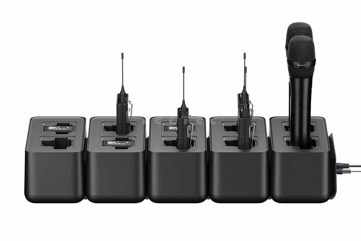 Das Sennheiser CHG 70N-C ist ein netzwerkfähiges Ladegerät mit zwei Ladeschächten für EW-DX SKM Handsender, EW-DX SK Taschensender und BA 70 Akkus.