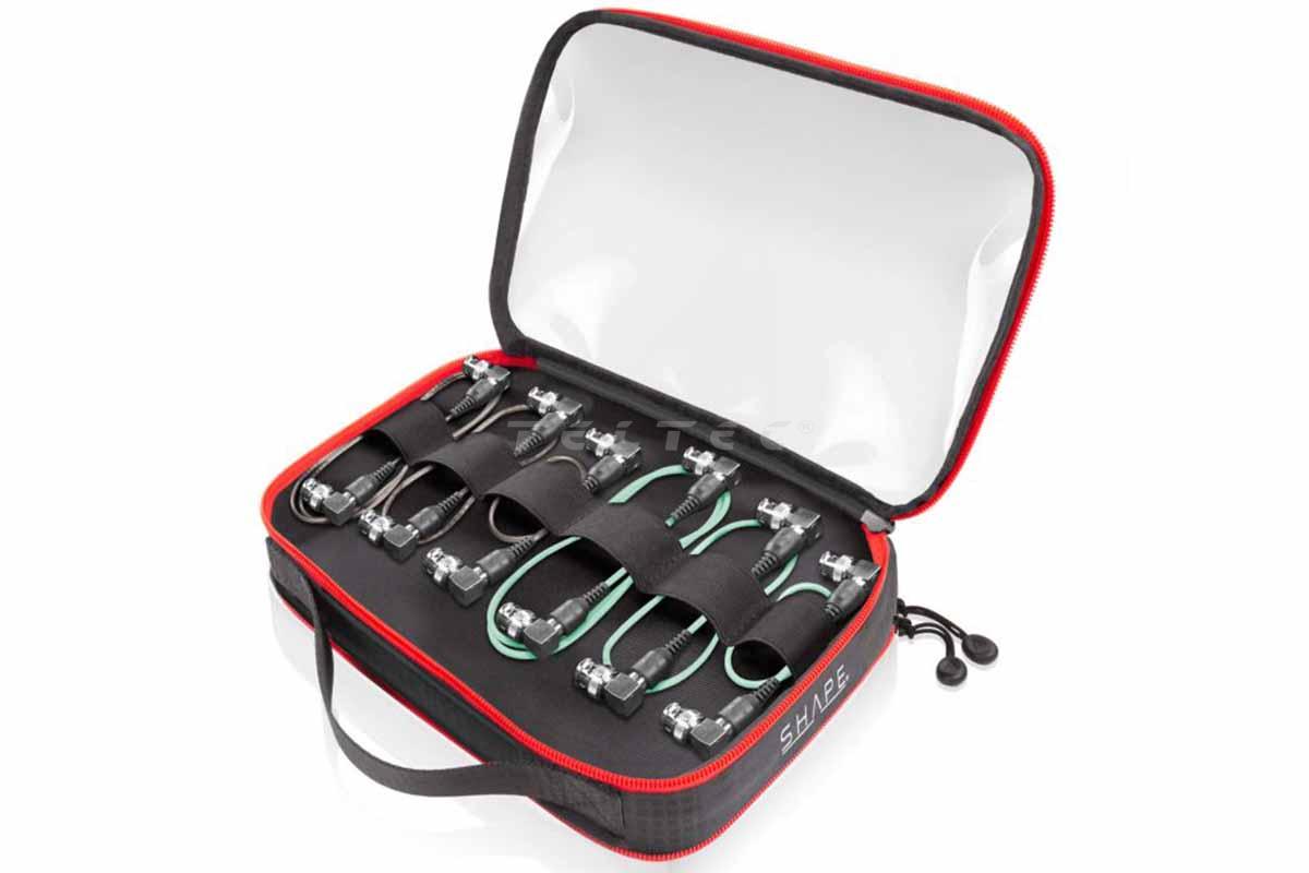 Das Shape BNKI ist eine Aufbewahrungstasche inklusive 12 BNC Kabel. Sie bietet zwei Seiten zur Aufbewahrung, wobei eine Seite tief, die andere flach ist. Größeres Zubehör wie Ladegeräte und Mikrofone finden Platz in der tieferen Seite, während die flache Seite ideal für Kabel geeignet ist. Dank der elastischen Bänder kann besser für Ordnung gesorgt und dem Verknoten von Kabeln vorgebeugt werden. Zum Lieferumfang gehören 12 BNC-Kabel mit Winkelanschluss dazu, die drei unterschiedliche Farben und Längen abdecken.