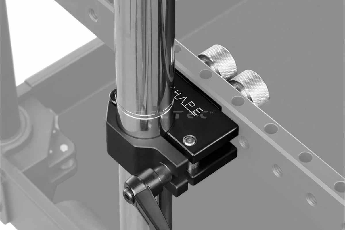 Das Shape Tripod Holder Kit für den Camera Cart umfasst eine Stange mit einem Baby-Pin und einer Länge von 82 cm sowie einem verstellbaren Stativhalterungssystem mit zwei Armen. Es dient als flexible Befestigungslösung zum Verstauen von regulären und Baby-Pin-Stativbeinen, die mit Aluminiumhalterungen an den seitlichen Stangen des Wagens befestigt werden. Die Arme des Stativhaltersystems sind in der Breite verstellbar und können mit einem Ratschenknopf um 360° gedreht werden. Das Kit ist zudem höhenverstellbar und kann leicht montiert oder demontiert werden.