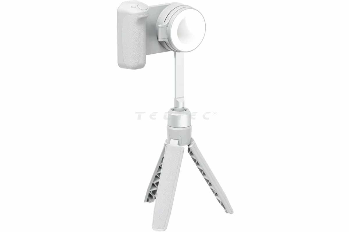 - klappbares LED-Ringlicht mit etwa 2-mal so viel Helligkeit wie integrierte Smartphone-Leuchten