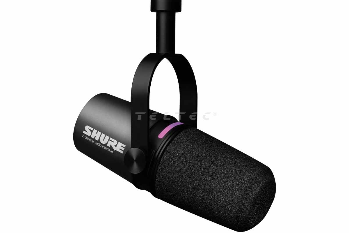Das Shure MV7i ist ein USB-Mikrofon mit integriertem Audio-Interface. Es verfügt über Sprach-DSP für den sofortigen Start ins Podcasten, Streamen oder in die Content-Creation. Die Zwei-Kanal XLR/6,3-mm-Klinke Kombibuchse unterstützt z.B. Mikrofone und kabelgebundene Musikinstrumente, wobei der XLR-Eingang eine 60-dB-Verstärkung und 48-V-Phantomspeisung bietet. Zudem hat das MV7i ein farblich anpassbares LED-Touch-Panel, das über die MOTIV Mix-App personalisiert werden kann. Über eine einfache Berührung kann das Mikrofon stummgeschaltet werden. Über den 3,5-mm-Klinkeneingang können das Mikrofon selbst und das Eingangssignal in Echtzeit überwacht werden. Verschiedene Aufnahmemodi lassen sich die Audiodaten zu einer Mono-Spur zusammenführen, in zwei Mono-Spuren teilen oder als Stereo-Audio des Eingangssignals mit der Mikrofon-Aufnahme kombinieren.