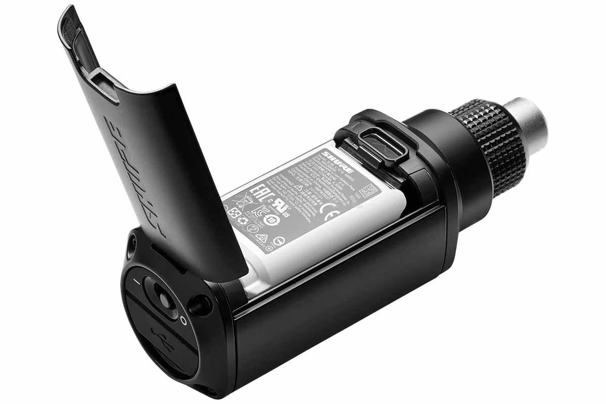 - bis zu 8 Stunden Laufzeit mit zwei AA-Batterien oder separat erhältlichem Shure SB903 Lithium-Ionen-Akku