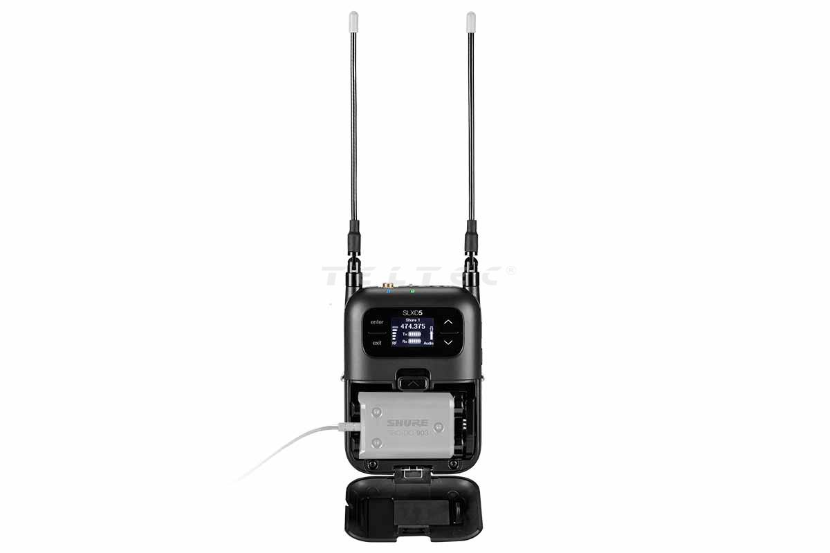 Das Shure SLXD5=-G59 ist ein mobiler, digitaler 1-Kanal-Drahtlosempfänger mit OLED Display, der auf dem Blitzschuh einer Kamera montiert wird. Der Empfänger bietet ein transparentes, digitales 24-Bit-Audiosignal sowie eine effiziente UHF-Übertragung mit großer Reichweite. Über den Multi-Mic-Modus können mehrere, störungsfreie Frequenzen per IR-Sync gescannt und synchronisiert werden. Über die konfigurierbaren Bedienelemente auf der Vorderseite des Empfängers ist zudem die Überwachung mehrerer Quellen möglich.