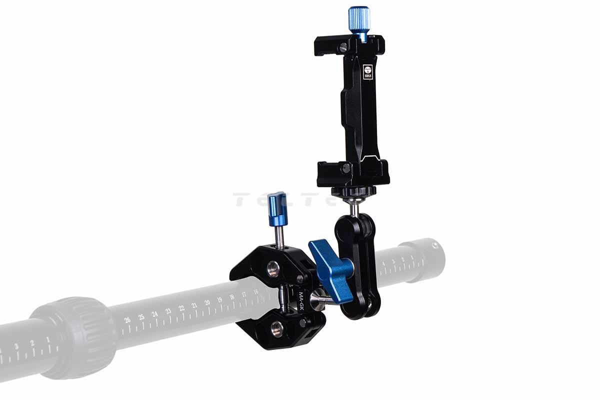 Die SIRUI MA-G Serie ist ein vielseitiges und robustes Befestigungssystem für Kameras, Smartphones und anderes Zubehör. Dank seiner starken Klemmkraft und dem flexiblen Kugelarm ermöglicht es eine sichere Montage an verschiedenen Oberflächen wie Stativen, Tischen oder Ähnlichem. Die mitgelieferte Smartphone-Halterung ist auch für größere Smartphones geeignet und sie ist abschraubbar, damit man mit dem 1/4“ Gewinde anderes Zubehör, wie z.B. kleine LED-Leuchten anbringen kann.