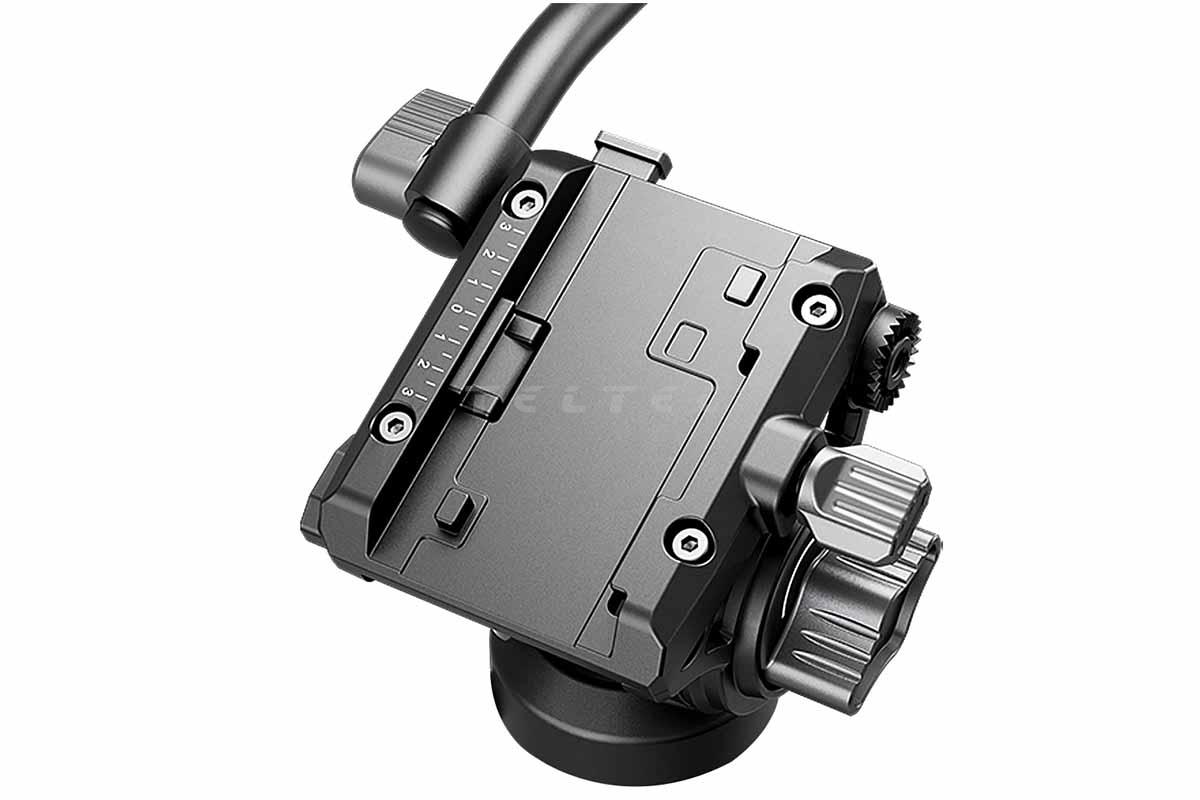 Der SIRUI S3 Fluid Video-Neigekopf ist ein Stativkopf mit MF Quick Release System und einer Belastbarkeit von bis zu 6 kg. Sein leistungsstarkes Dämpfungssystem ermöglicht geschmeidige Neigungen im Bereich von -50° bis +90°. Außerdem fährt der Kopf automatisch in die Ausgangsposition zurück, wenn der Griff losgelassen wird. Rotieren kann er standardmäßig um 360°. Dank des Quick Release Systems kann mit einem Knopfdruck schnell zwischen z.B. einer Manfrotto und einer DJI RS Series QR Platte gewechselt werden (beide nicht enthalten). Unterseitig bietet er ein 3/8"-Gewindeloch und passt somit auf zahlreiche Flachboden-Stative. Der aus einer Aluminiumlegierung gefertigte Videokopf kann bis zu 6 kg tragen und erleichtert mit seiner eingebauten Wasserwaage das gerade Ausrichten des Setups.