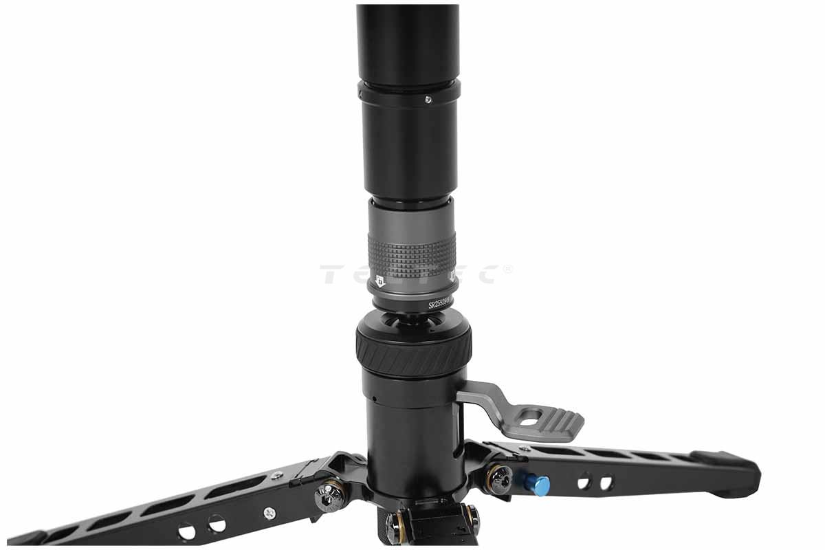 Das SIRUI SVM-165P Rapid System Einbeinstativ ist ein modulares Einbeinstativ mit Standspinne und Pedal, 165 cm Höhe. Es zeichnet sich durch seine schnelle Ein-Schritt-Höhenverstellbarkeit aus, welche mit einer simplen Handbewegung über ein Drehverschlusssystem vorgenommen wird. Mit dem Pedal kann die Winkelausrichtung des Stativs verändert werden - und zwar bis zu 20° in der Neigung und 360° in der Rotation. Die Reibung kann je nach Belieben auch über ein Einstellrad an der Kugel verändert werden. Die beiliegende Standspinne SVM-LF erhöht mit ihren drei 18 cm langen Beinen die Standfestigkeit. Durch seine modulare Eigenschaft kann das Stativ zerlegt und z.B. mit nur der Standspinne und der Montageplatte zu einem kleinen Tischstativ umfunktioniert werden. Je nach Zusammensetzung und Winkeleinstellung variiert die Traglastkapazität zwischen 5 und 10 kg.