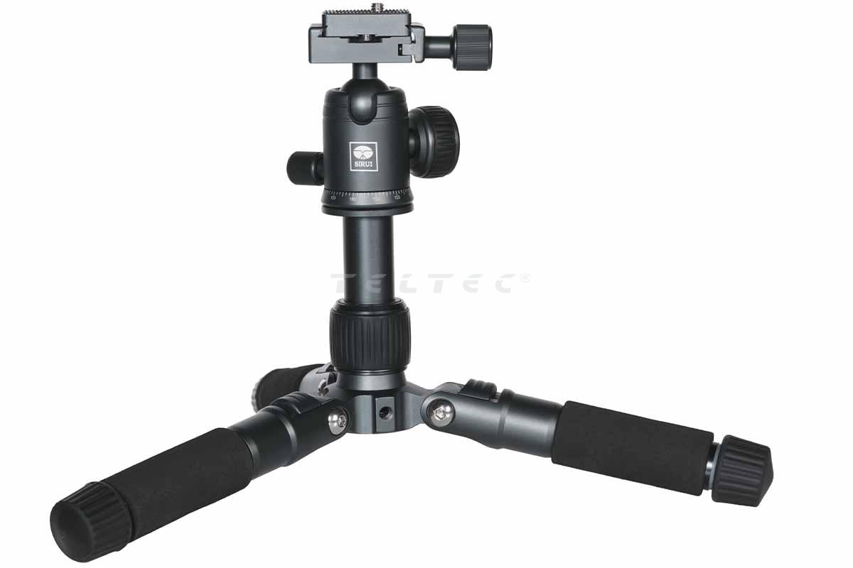 Das neue Sirui TT-50 ist ein sehr kompaktes und vielseitig einsetzbares Mini-Stativ aus Aluminium. Durch ein durchdachtes Konzept, hochwertige Verarbeitung und nützliche Features spricht das Stativ eine breite Masse an Anwendern an. Egal ob man mit dem Smartphone (Handyhalterung inkl.) oder mit einer kompakten Systemkamera fotografiert, filmt oder streamt. Die Beine lassen sich mit einer Handumdrehung komplett ein und ausfahren sowie in 3 verschiedenen Winkeln einstellen. Um Zubehör, wie ein kleines Licht oder ein Mikrofon anzubringen, bietet das Stativ ein ¼“ Gewinde. Mit einem Gewicht von nur 800 Gramm und einem Pack-Maß von 18cm nimmt man es immer gerne überall mit hin.