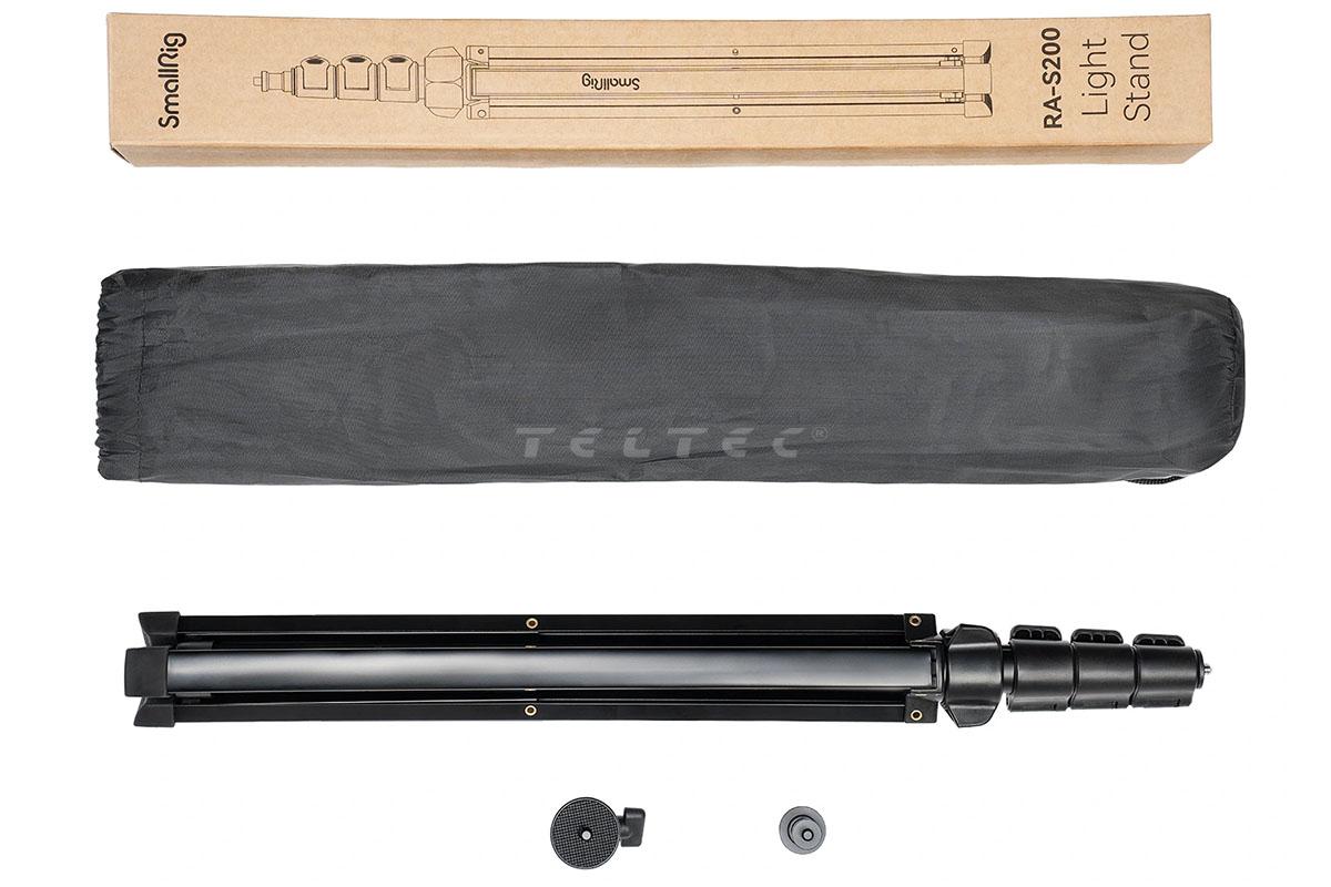 Das SmallRig RA-S200 ist ein leichtes Beleuchtungs-Staiv mit einer Traglast von bis zu 4 kg. Es eignet sich für Ringleuchten, Flächenleuchten und COB-Leuchten aber auch für Mikrofone und anderes Zubehör. Bei einer einstellbaren Höhe von 56 bis 200 cm ist es mit einem Eigengewicht von nur ca. 1.000 g und einem Packmaß von 56 cm sehr kompakt und einfach zu transportieren. Im Lieferumfang ist eine Aufbewahrungstasche und ein Metallkugelkopf enthalten, der sich für die verschiedensten Aufnahmeszenarien eignet.
