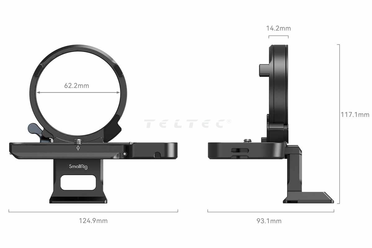 Das SmallRig 4570 Horizontal-to-Vertical Mount Plate Kit beinhaltet zwei Montageplatten, um zwischen dem horizontalen und vertikalen Modus zu wechseln, ohne das es einer Änderung der optischen Achse des Objektivs bedarf. Die untere Montageplatte wird per 1/4"-20-Schraube an der Unterseite der Kamera befestigt, wobei voller Zugriff zu den Tasten und zum LCD-Display gewährleistet wird. Per Knopfentriegelung erfolgt die Drehung um 90°, um zwischen den beiden Modi zu wechseln. Darüber hinaus besteht Kompatibilität mit den Arca-Swiss- und Manfrotto RC2-Stativen. Über die unteren 1/4"-20- und 3/8"-16-Gewindebohrungen ist die Montage von weiterem Zubehör wie dem Handgriff 2093C möglich.