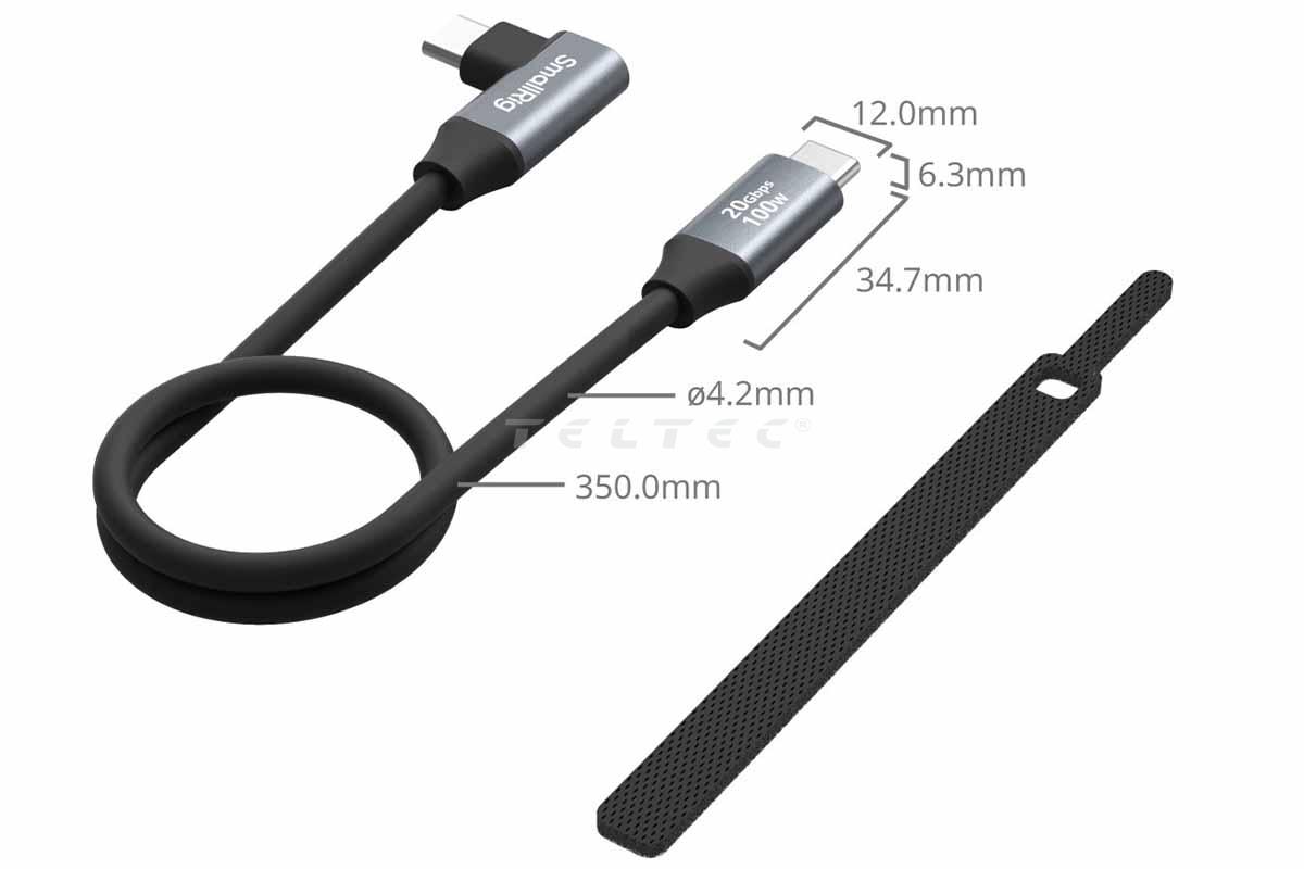 SmallRig 4790 USB-C (Straight) to USB-C (Angled) Data Cable (35 cm)