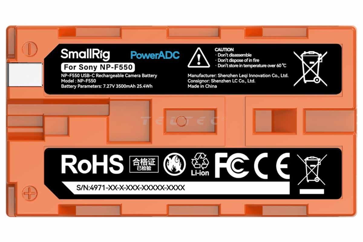 - 1x SmallRig 4971 NP-F550 USB-C Rechargeable Camera Battery (Orange)