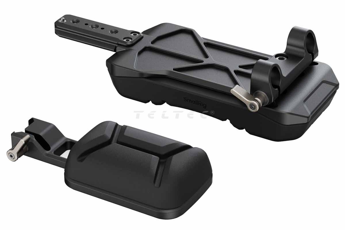 Das SmallRig 5153 Universal Shoulder Pad with 15mm Dual Rod Clamp ist ein mit 15-mm-Rohrklemmen ausgestattetes Schulterpolstersystem. Es hilft dabei, die Schulter bei entsprechenden Einsätzen zu entlasten und besteht aus zwei Polstern, wovon einer oben auf der Schulter liegt, der andere am Rücken. Über einen Hebel können zwei separat erhältliche 15-mm-Rohre befestigt werden. Die Polster sind für beide Schulterseiten geeignet, während das Rückenpolster auch als Brustpolster genutzt werden kann. Dank des Klettverschlusses können die Polster auch schnell angebracht und ausgetauscht werden.