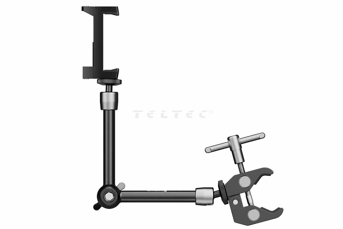 Das SmallRig 5326 Crab-Shaped Clamp for Phones (9.8") ist eine Krabbenklemme für Mobilgeräte, die zudem einen Magic Arm und eine Smartphone-Klemme umfasst. Mittels einer 1/4"-20-Schraube kann eine Actionkamera, Monitor, Mikrofon o.ä. befestigt werden, während das andere Ende an einer Stange, einem Tisch, Stativbeinen oder einem Handheld-Ring mit einer Klemmöffnung von 14-50 mm montiert wird. Die Verbindung zwischen dem Magic Arm und der Super-Klemme verfügt über ein Anti-Umlenkmechanismus, der zusätzliche Stabilität bietet und ein Lösen der Klemme verhindert. Die Klemmbacken haben Schutzpolster, sodass keine Kratzer entstehen.