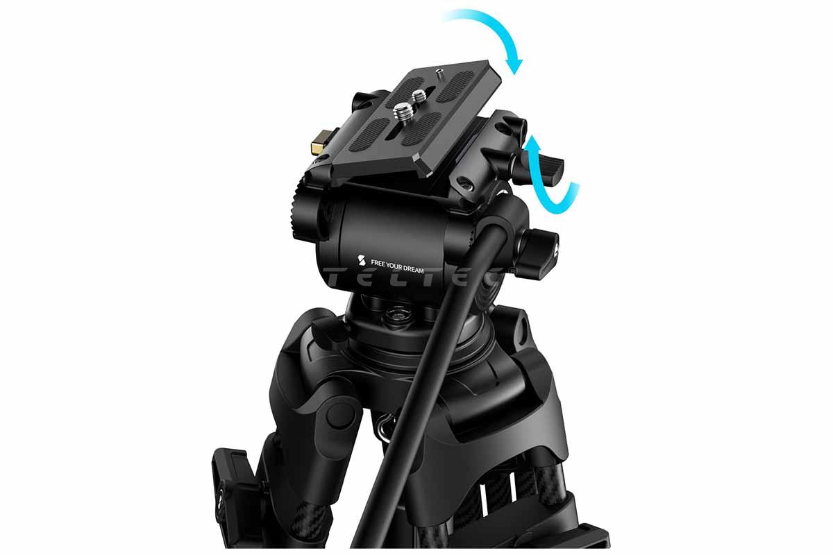 • präzisionsgefertigter Fluidkopf mit Einstellknopf zur Neigungsdämpfung