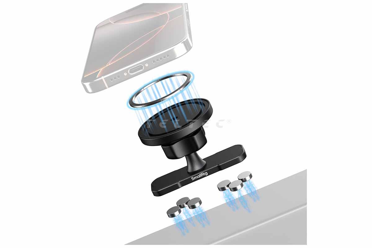 Die SmallRig 5460 MagSafe-kompatible Telefonhalterung ist eine Telefonklemme, die zur Verwendung mit iPhone- und Android-Geräten mit MagSafe geeignet ist, um diese an flachen magnetischen Oberflächen zu befestigen. Der Magnetfuß verfügt über die Güteklasse N54, um eine stabile Verbindung zu gewährleisten. Der integrierte Kugelkopf ist um 360° verstellbar und ermöglicht eine stufenlose Winkeleinstellung für optimale Bildausschnitte.