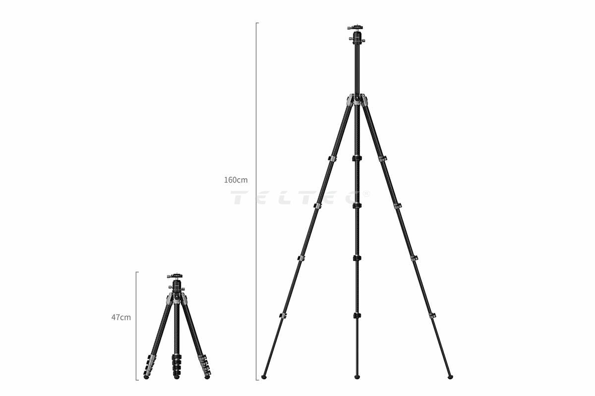 Das SmallRig 5478 Portable Photo Carbon Fiber Tripod aus 8-lagiger Kohlefaser verfügt über eine Quick-Release-Kameraplatte mit einer 1/4" Schraube zur Kamera- und Zubehörmontage. Die Mittelsäule lässt sich herausziehen, dadurch entsteht eine max. Arbeitshöhe von 160 cm. Damit erfüllt dieses Stativ vielfältige Aufnahmeanforderungen. Zum Transport lässt es sich auf kompakte 47 cm zusammenklappen und wiegt dabei nur 1,4 kg. Der perfekte Begleiter für Fotografie, Videografie und Live-Streaming.