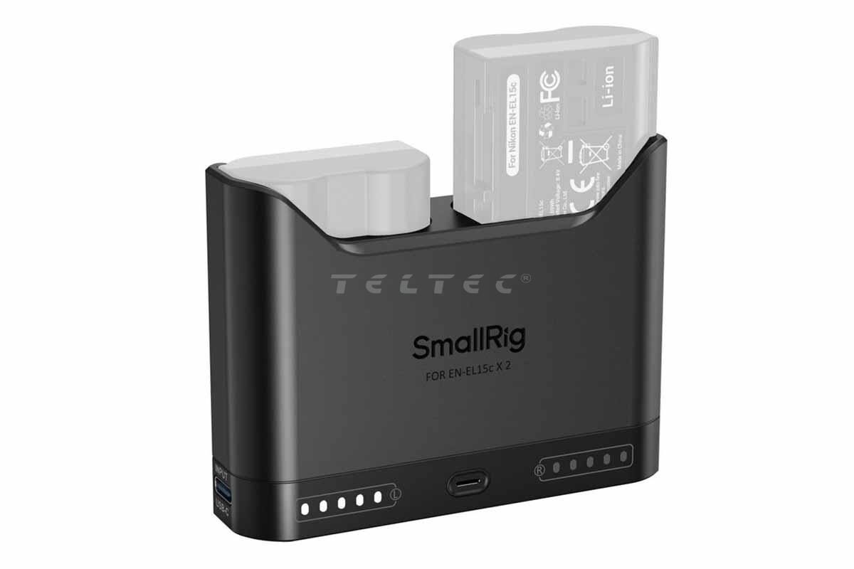 Das SmallRig 5491 Camera Battery Charger for EN-EL15c USB-C Parallel-Ladegerät für ein oder zwei EN-EL15c Akkutypen ist mit einer LED-Ladezustandsanzeige mit 5 Segmenten und einem integrierten Übertemperatur- und Überspannungsschutz ausgestattet.