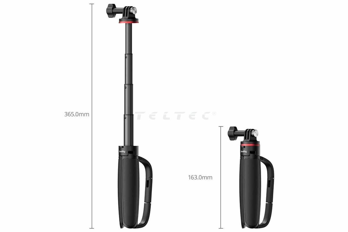 Das SmallRig 5568 VT-07 Action-Cam-Mantis-Stativ in Karabinerform ist ein Videostativ für Actionkameras, das ideal für Handheld-, Desktop- oder hängende Aufnahmen geeignet ist. Es umfasst einen 4-teiligen Teleskoparm sowie ein innovatives Karabiner-Design, das den Transport erleichtert und den Tragekomfort verbessert. Über den integrierten Mantis-Haken am hinteren Ende wird die Aufhängung an Basketballkörben oder Zäunen beispielsweise, ermöglicht. Über den Actionkamera-Halterungsadapter an der Oberseite ist eine Neigung von bis zu 180° für vielseitige Aufnahmewinkel gegeben.