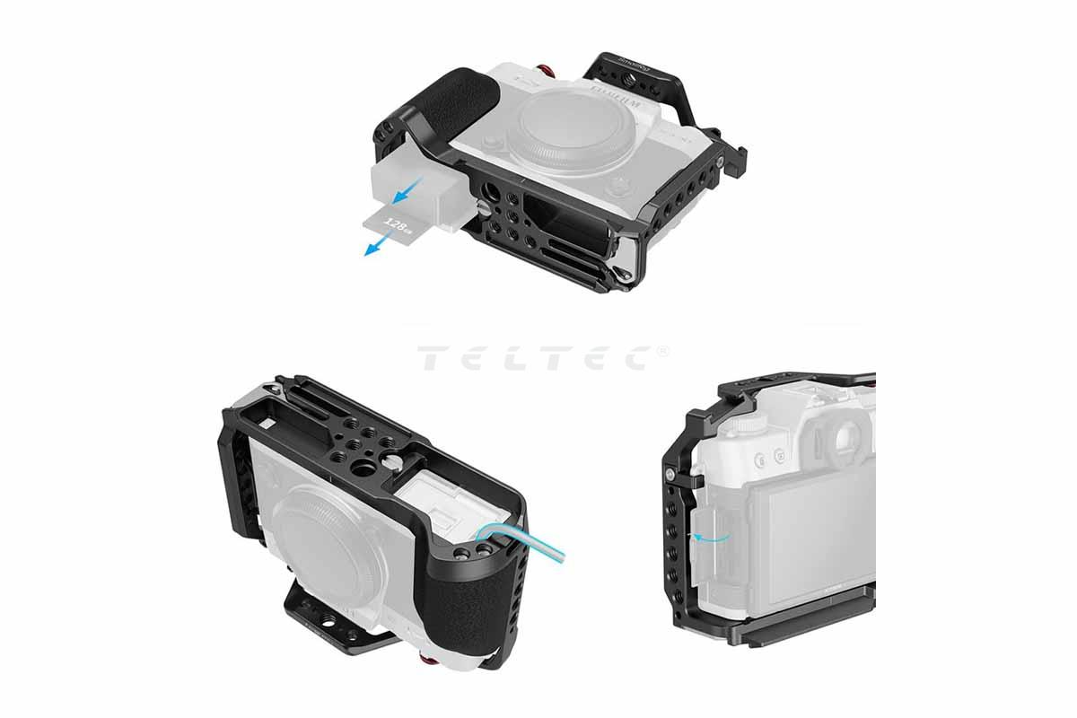 Das SmallRig 5662 Cage for FUJIFILM X-T30 / X-T30 II / X-T30 III All-in-One Käfig-System schützt nicht nur die Kamera bei Stößen sondern bietet gleichzeitig noch zahlreiche Befestigungsmöglichkeiten für Zubehör wie z.B. Mikrofone, Kopflichter oder Monitore. Mit der integrierten Arca-Swiss Schnellwechselplatte lassen sich Kamera und Käfig problemlos auf Stabilisierungssysteme wie z.B. DJI RS 2, RSC 2, RS 3, RS 3 Pro, RS 4 oder RS 4 Pro montieren. Im Lieferumfang ist eine spezielle Auslöserkappe für die FUJIFILM Kamera enthalten