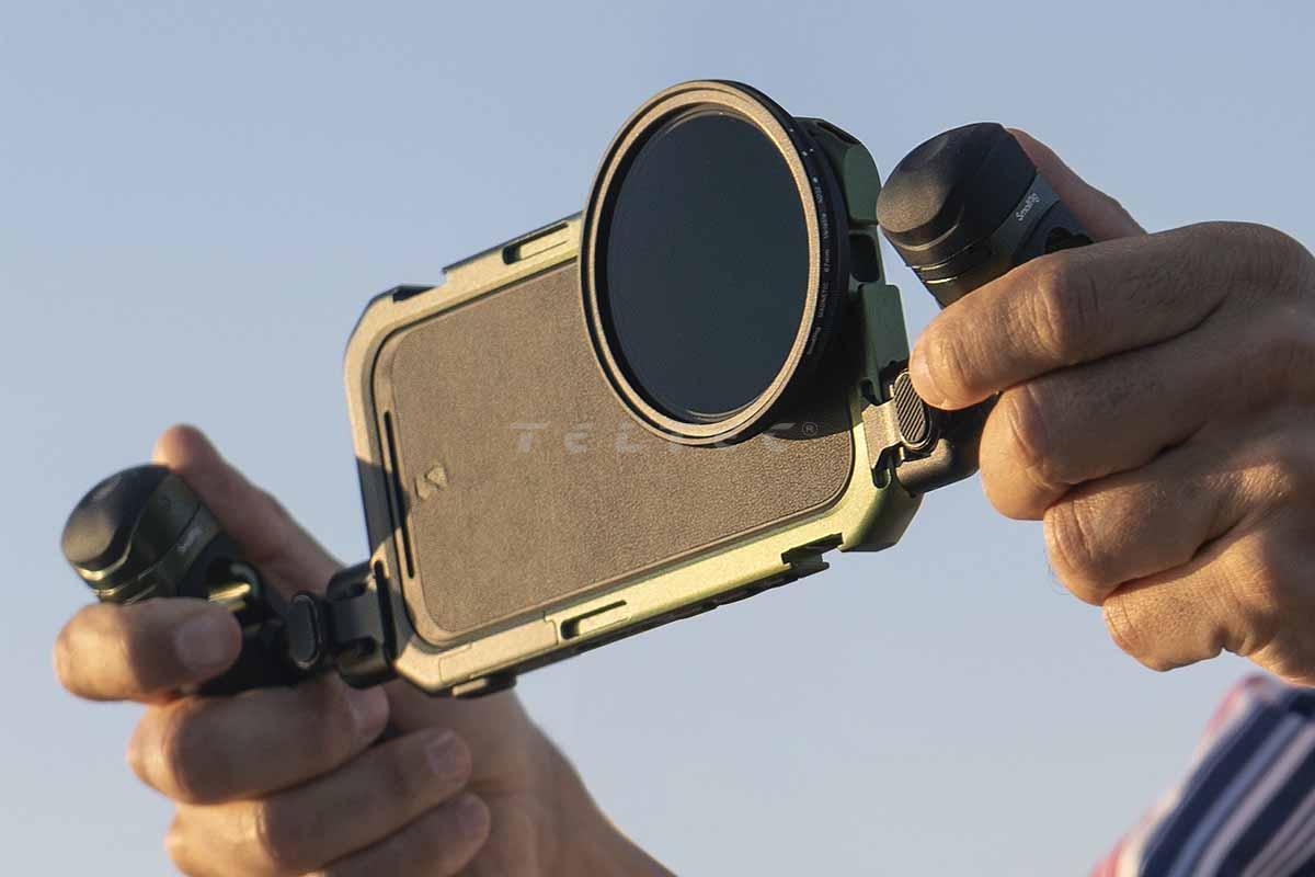 mobiler Videokäfig mit zwei Handgriffen für iPhone 16 Pro Max