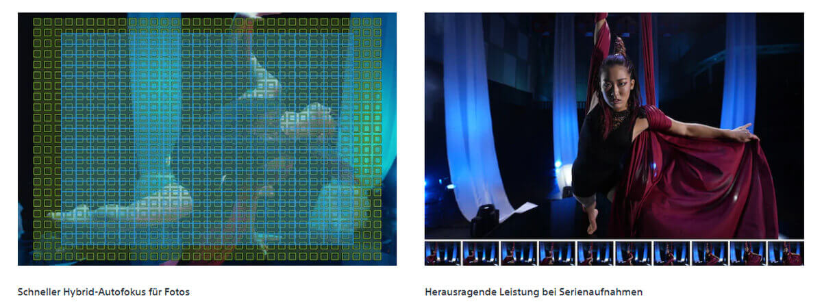 | Fokustyp | Schneller Hybrid-Autofokus (AF-Phasendetektion/ AF-Kontrastdetektion) |