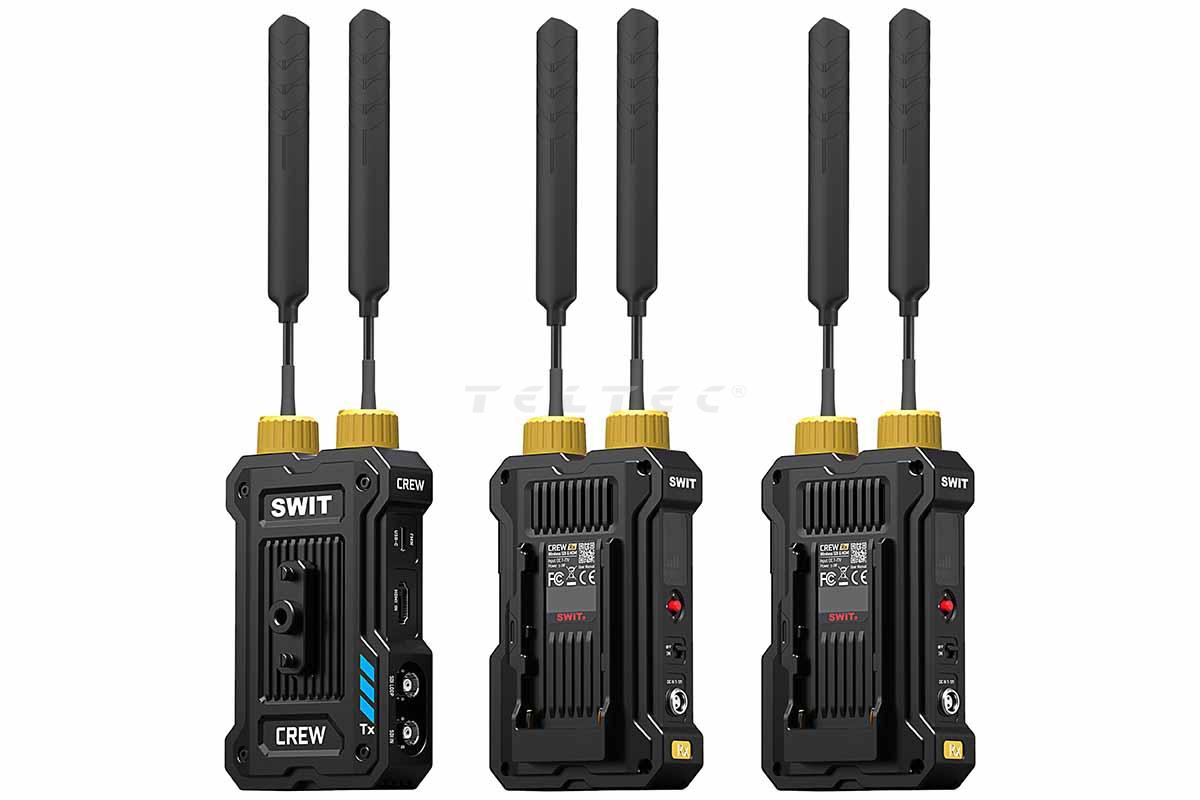 Das Swit CREW ist ein professionelles drahtloses Videosystem mit einer Reichweite von bis zu 1,2 km (4000 ft). Die Übertragung erfolgt nicht über Wi-Fi, sondern über die robuste KUWI 2.0 Pro-Funktechnologie im lizenzfreien 5,1–5,9 GHz-Bereich. Mit 32 ms konstanter Latenz, H.265-Kompression, 1T–4R-Multicast und visuell verlustfreier Bildqualität richtet sich das System an anspruchsvolle Broadcast-, Film- und Eventproduktionen. Zusätzliche Funktionen wie USB-C-Capture, SDI/HDMI-Ausgänge, Metadaten- und Timecode-Übertragung sowie AES-256-Verschlüsselung machen das CREW zu einer vielseitigen Lösung für zuverlässige Videofunkstrecken im professionellen Umfeld.