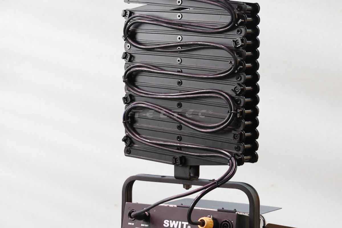 Der Swit GA-PT50E Pantograph ist ein Überkopf-Tragsystem, das eine motorisierte DMX-Steuerung zum Auf- und Abfahren von Studioleuchten mit einer Geschwindigkeit von 10 cm/s bietet. Professionelle Videostudios können die Höhe der Leuchten über die DMX-Konsole einstellen. Die Auszugslänge beträgt 0,8m - 5 m, die maximale Belastung 30 kg.