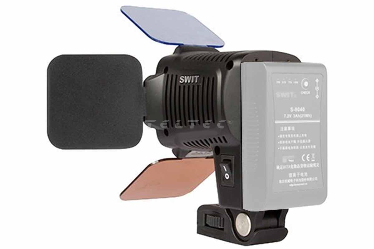 Das Swit S-2041 ist ein kompaktes COB LED On-Camera-Licht für professionelle Videoanwendungen. Dank Chip-on-Board-Technologie bietet die Leuchte eine gleichmäßige, blendfreie Lichtverteilung mit bis zu 1.800 Lux Lichtleistung auf einen Meter Distanz. Mit einem 23 Watt Lichtoutput entspricht sie einer herkömmlichen 100 Watt Halogenlampe. Die Leuchte hat eine Farbtemperatur von 5.000 K sowie einschwenkbare Filter für 3200 K und 5600 K. Die kompakte Bauweise, das geringe Gewicht sowie die kompatiblen Wechselplatten für DV-Akkus machen sie besonders flexibel für den mobilen Einsatz.